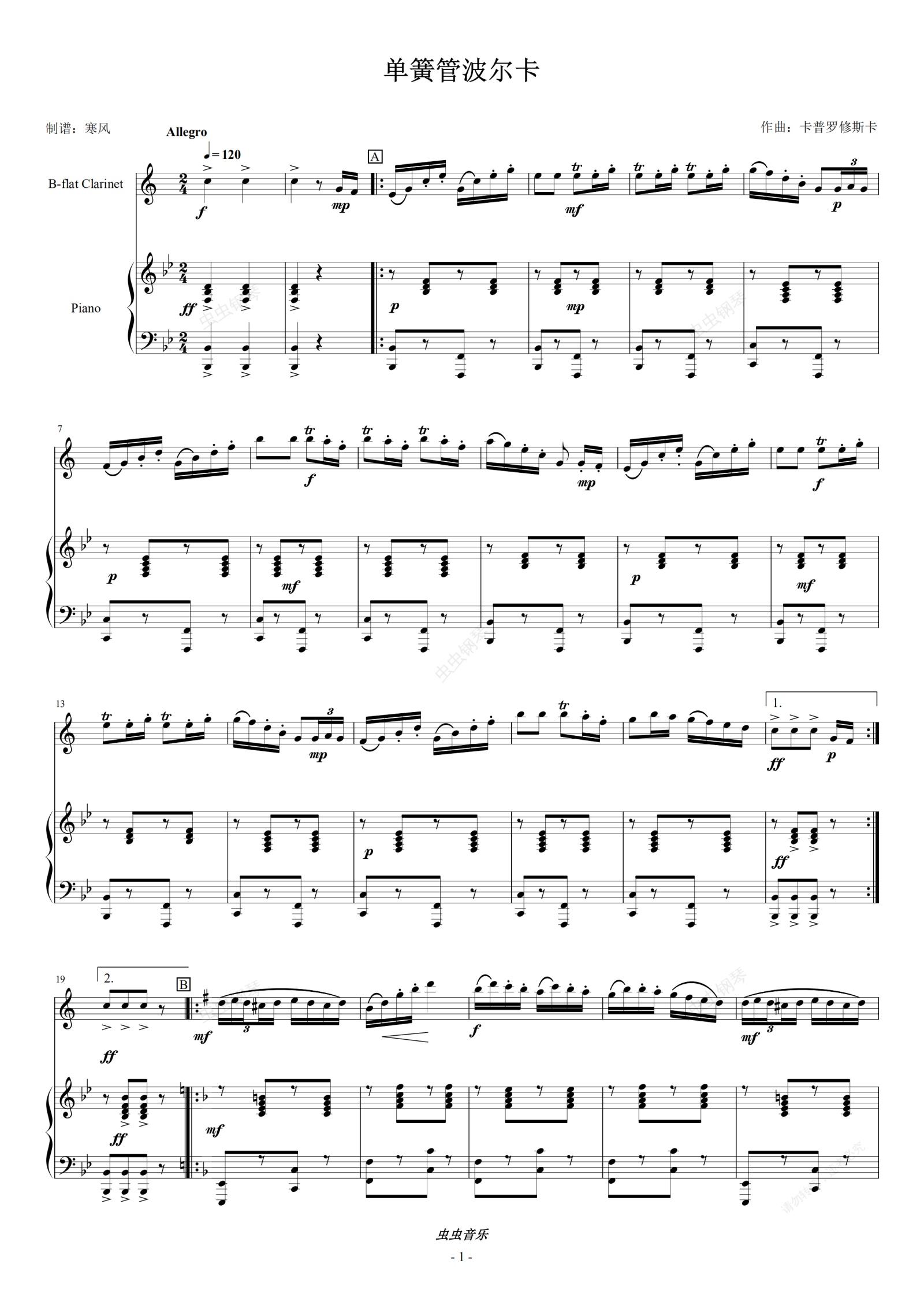 钢琴谱:卡普罗修斯卡-单簧管波尔卡(单簧管+钢琴)