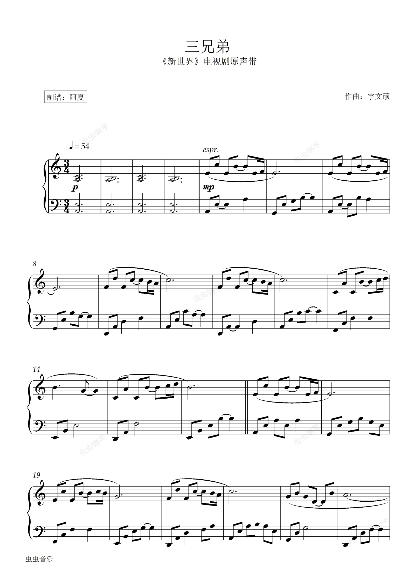 钢琴谱:三兄弟 - 电视剧「新世界」插曲
