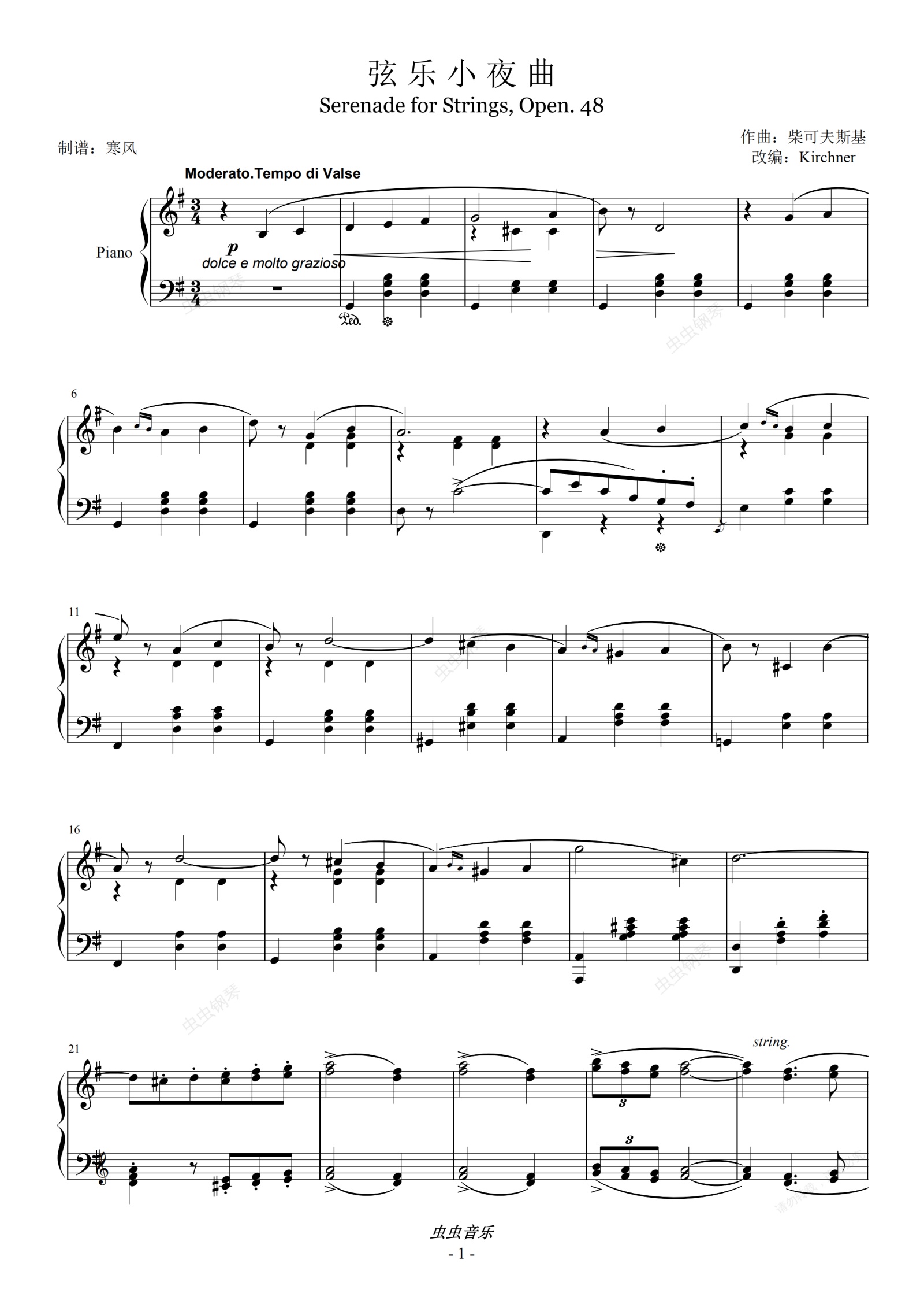 钢琴谱:柴可夫斯基-弦乐小夜曲第二乐章