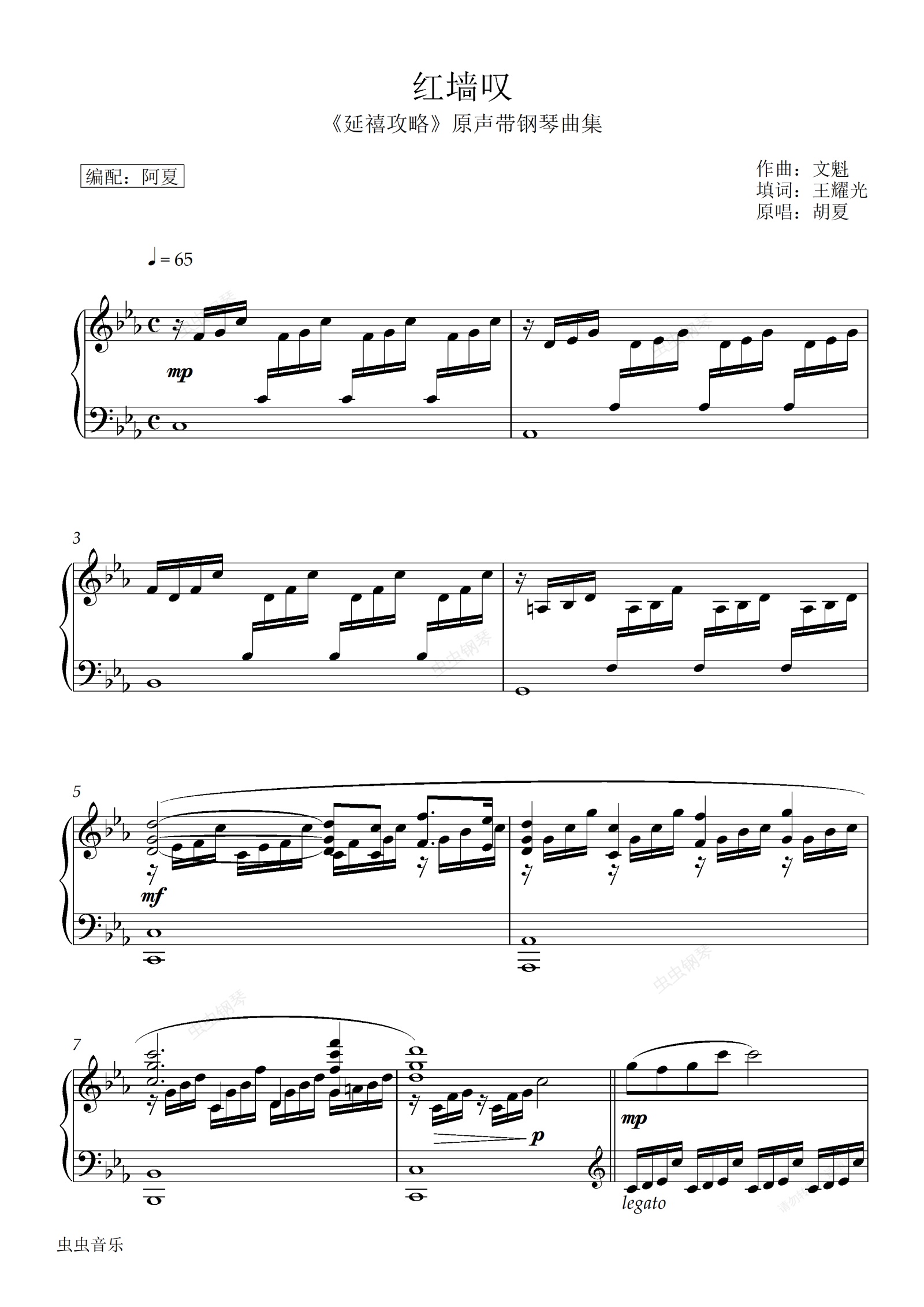 钢琴谱:红墙叹(音乐会演奏版)- 胡夏 -「延禧攻略」插曲