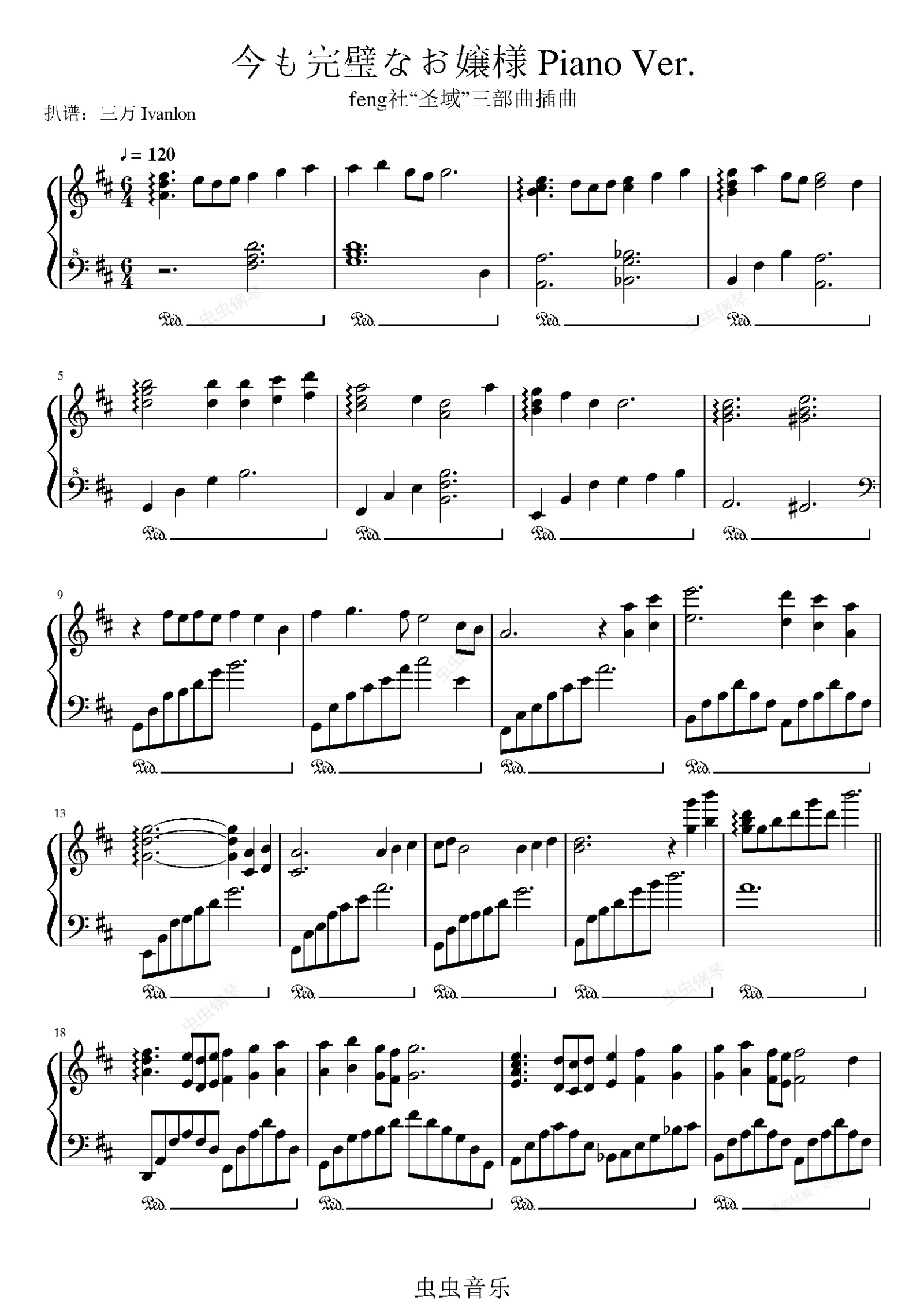 钢琴谱:今も完璧なお嬢様(feng社“圣域”三部曲插曲 她的圣域)