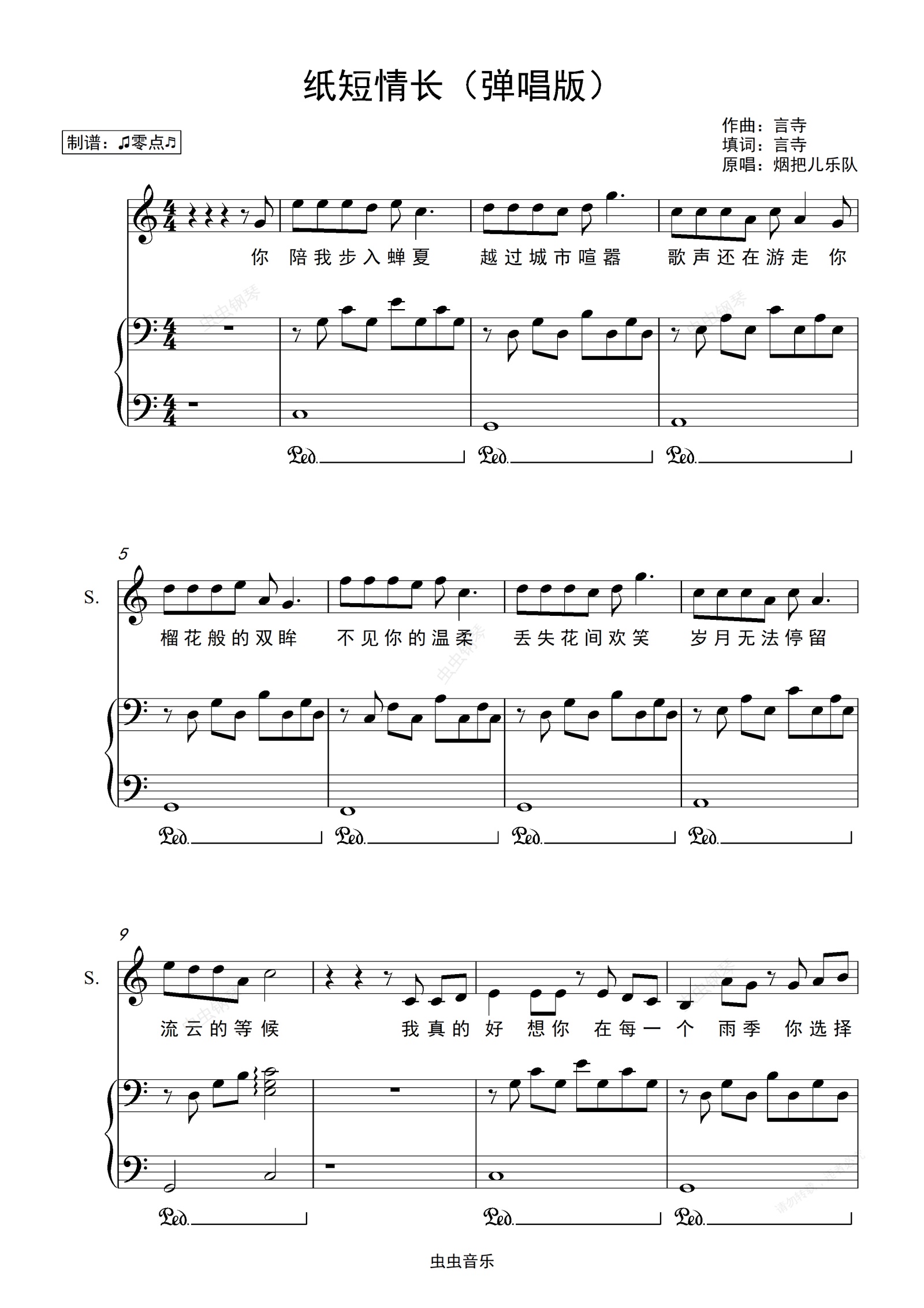 钢琴谱:纸短情长-弹唱谱/伴奏谱