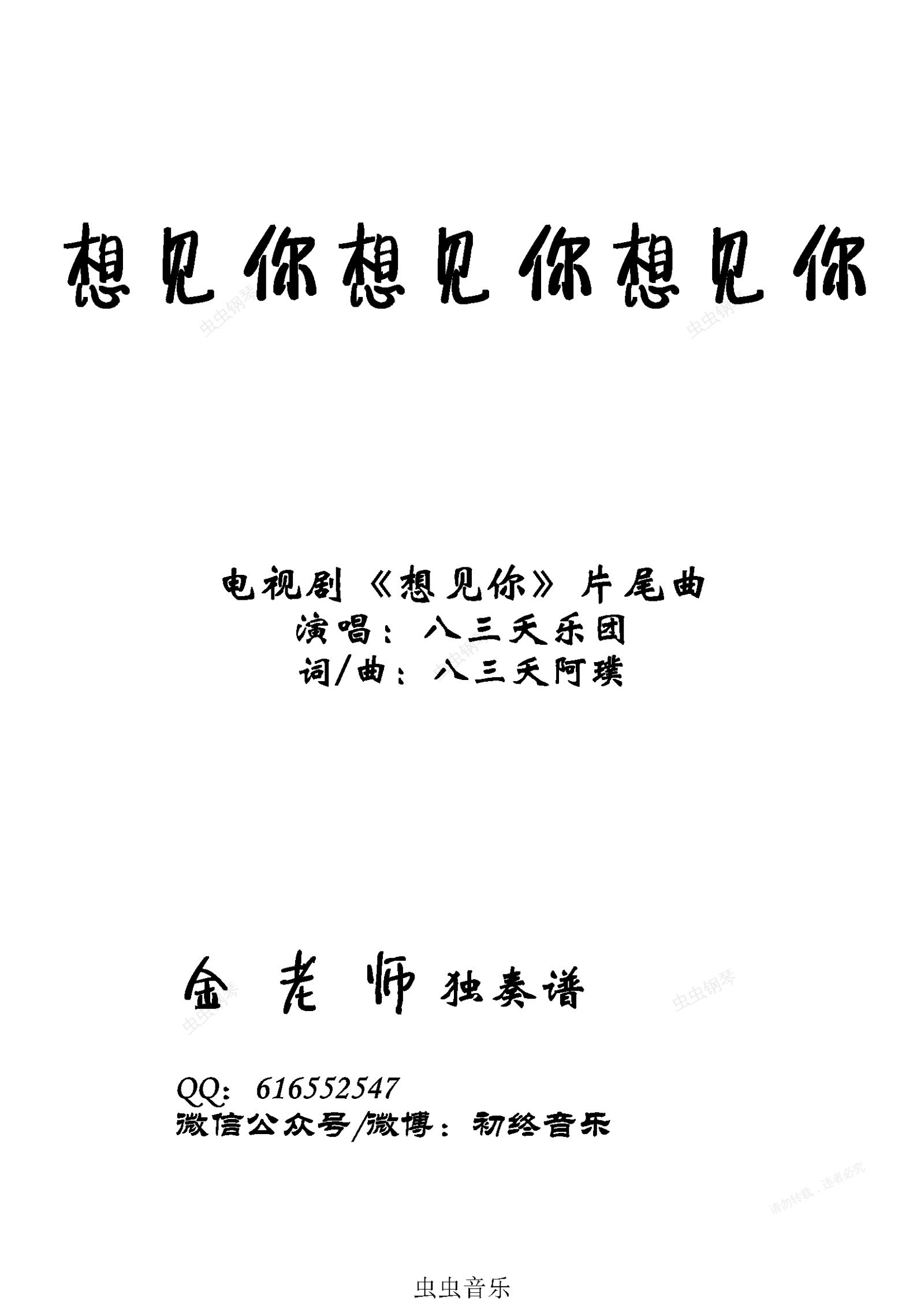 钢琴谱:想见你想见你想见你-金老师钢琴独奏谱