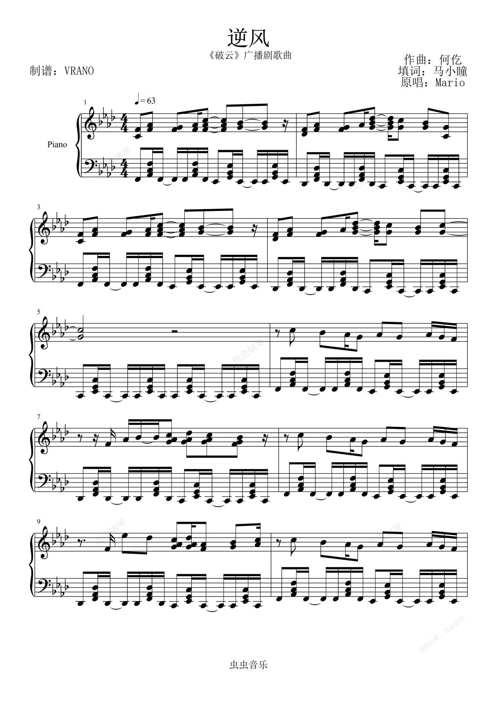 钢琴谱:逆风--破云广播剧主题曲