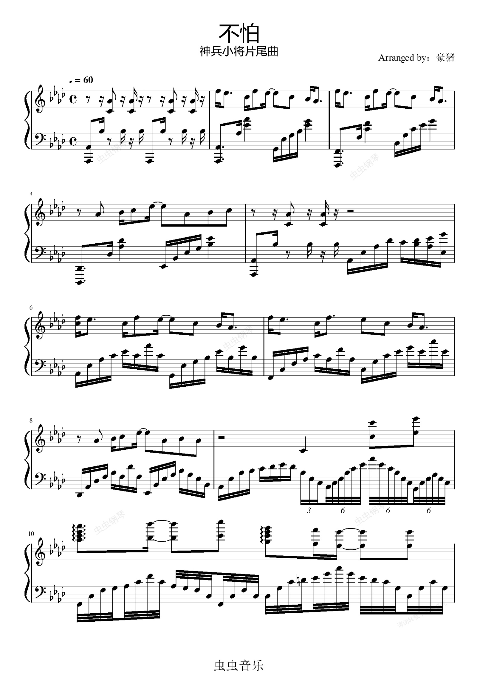 钢琴谱:神兵小将ED 《不怕》钢琴改编曲