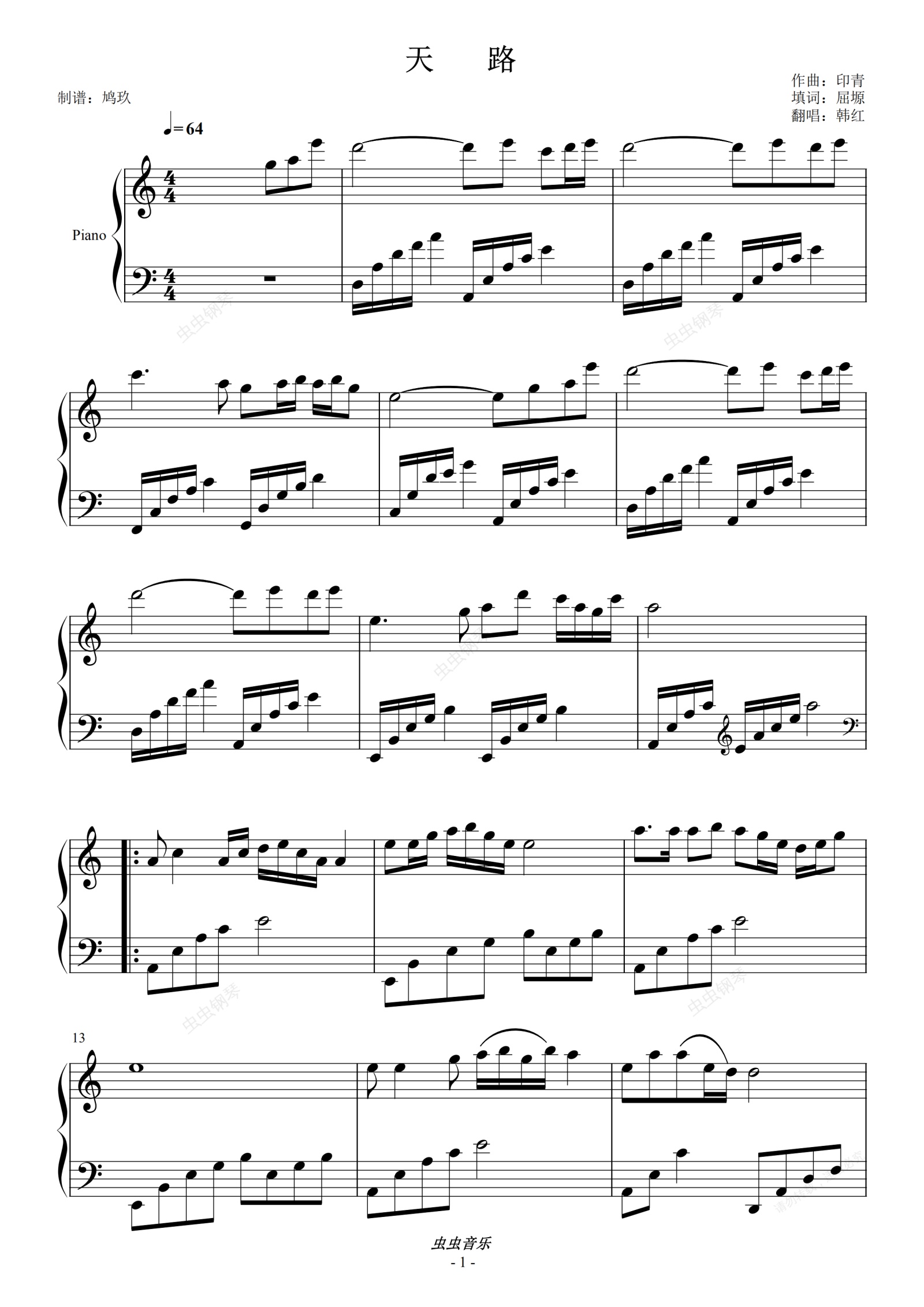 钢琴谱:天路(独奏实用版)