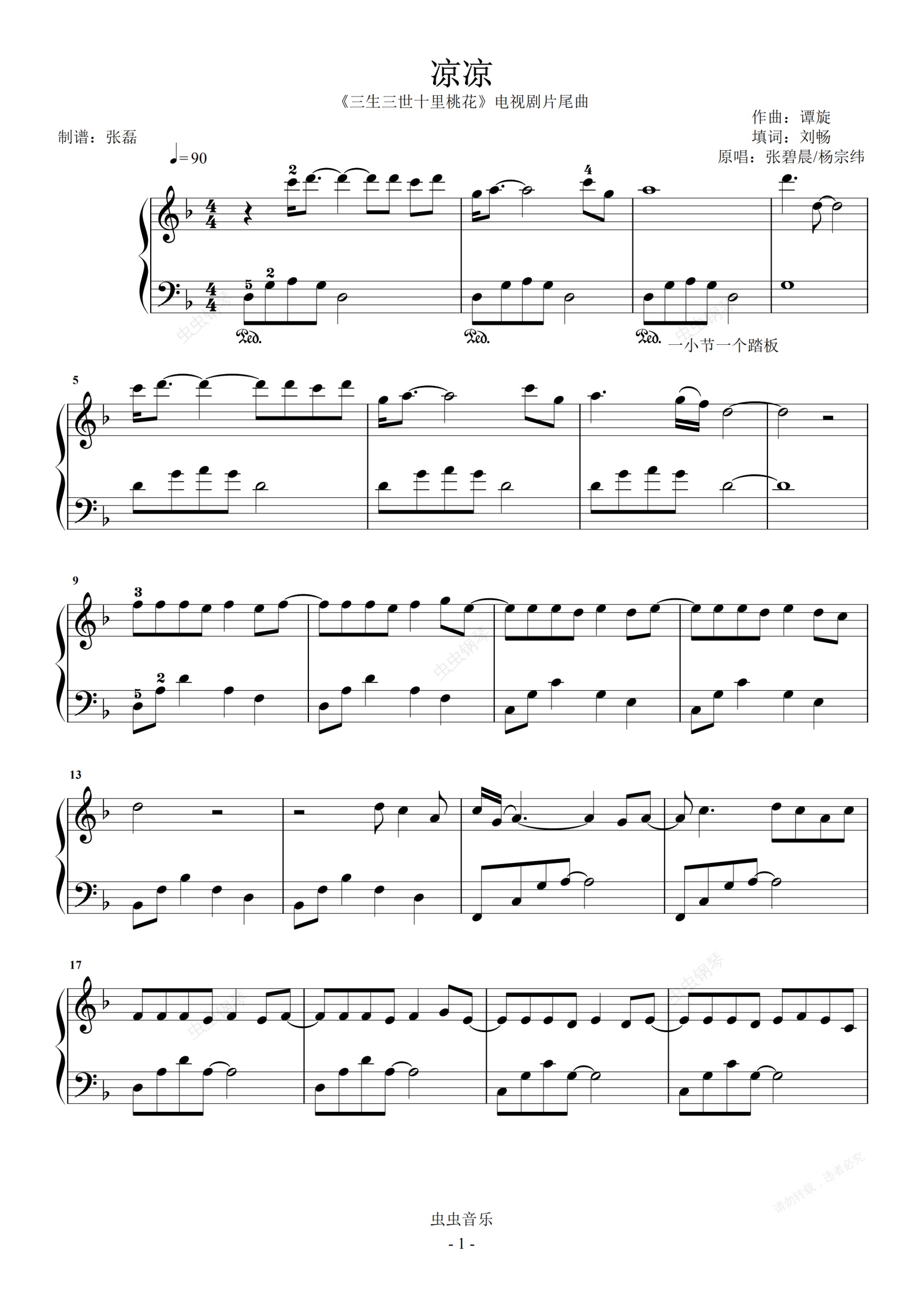 钢琴谱:凉凉-杨宗纬 张碧晨F大调《三生三世十里桃花》