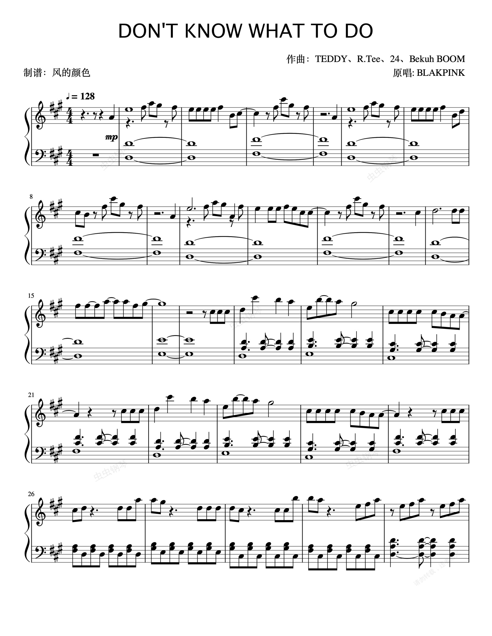 钢琴谱:Don't Know What To Do