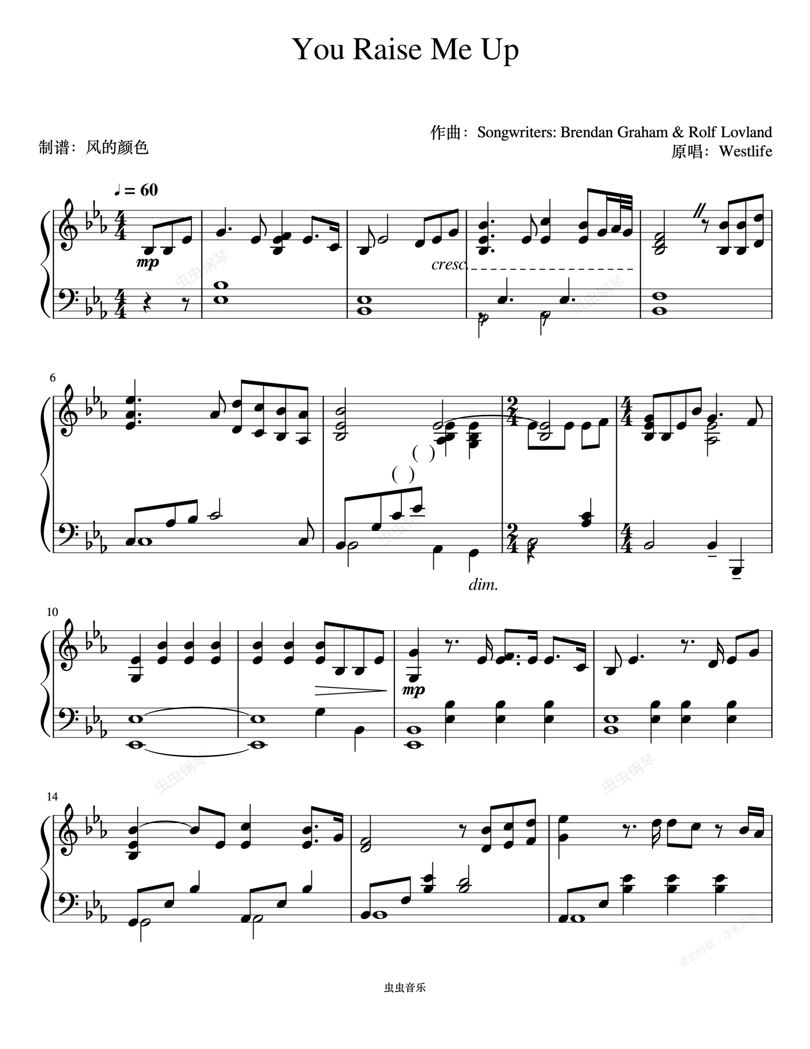 钢琴谱:《You Raise Me Up》经典怀旧版