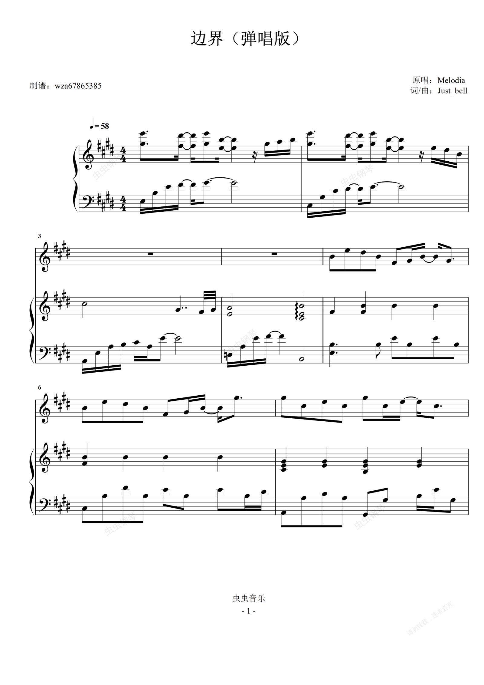 钢琴谱:边界 弹唱谱
