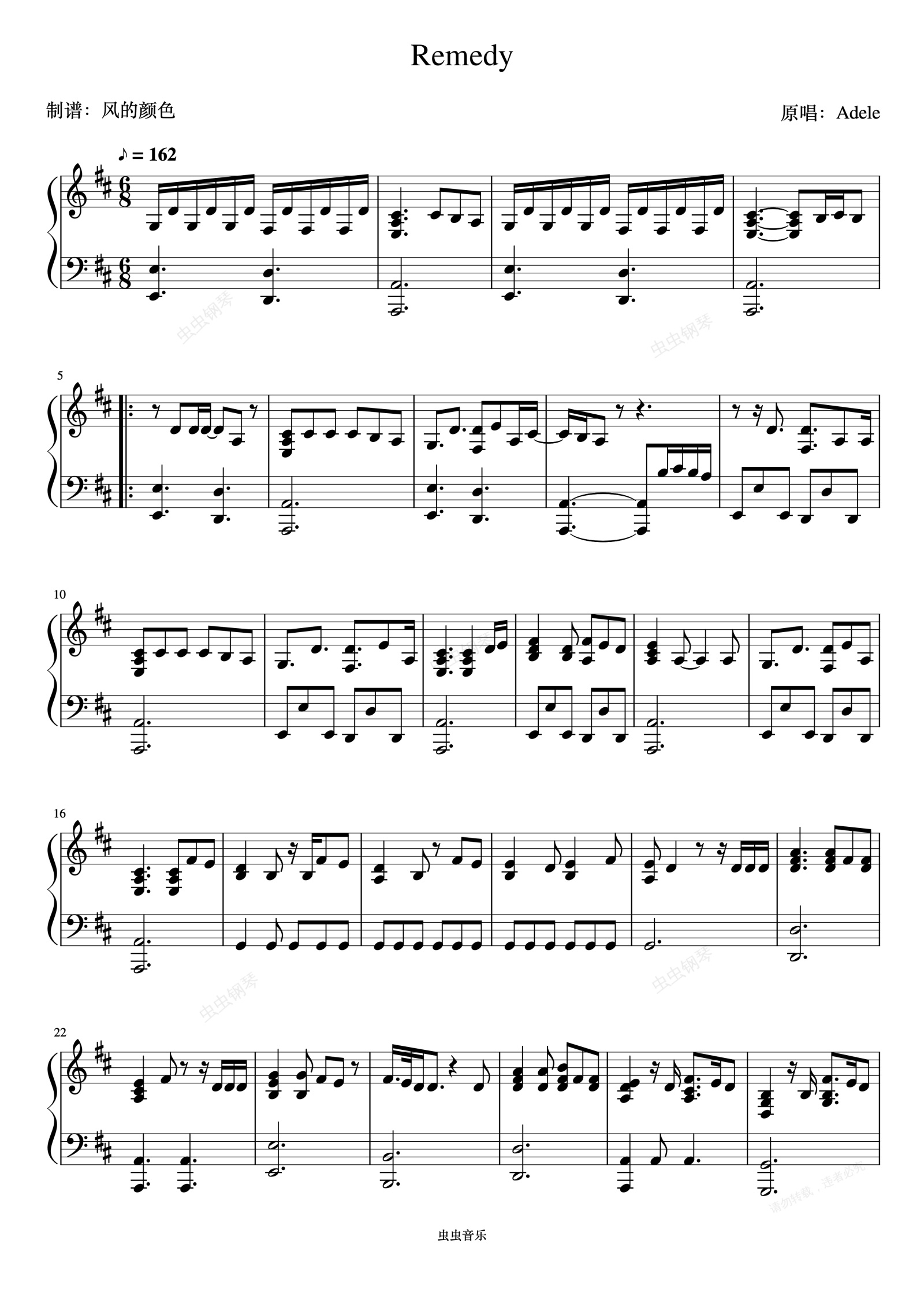 钢琴谱:《Remedy》Adele 简易上手版