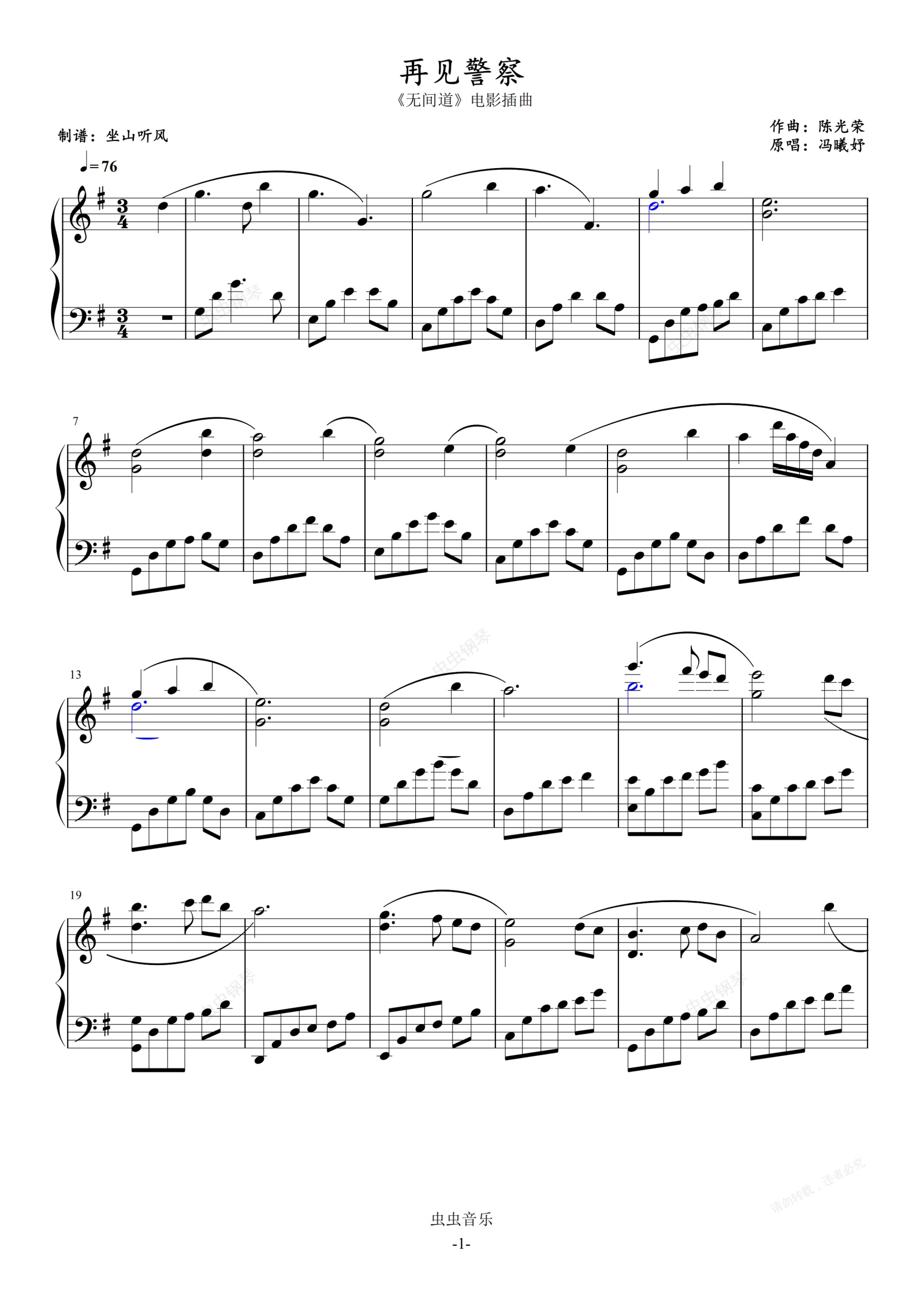 钢琴谱:再见警察———好听易上手(电影《无间道》插曲)