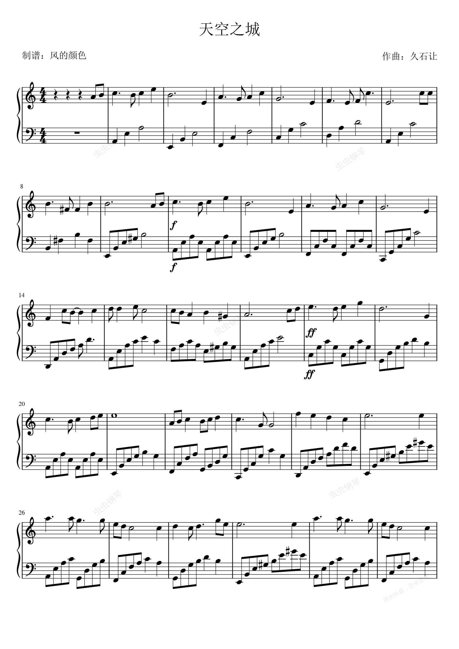 钢琴谱:《天空之城》经典完美版