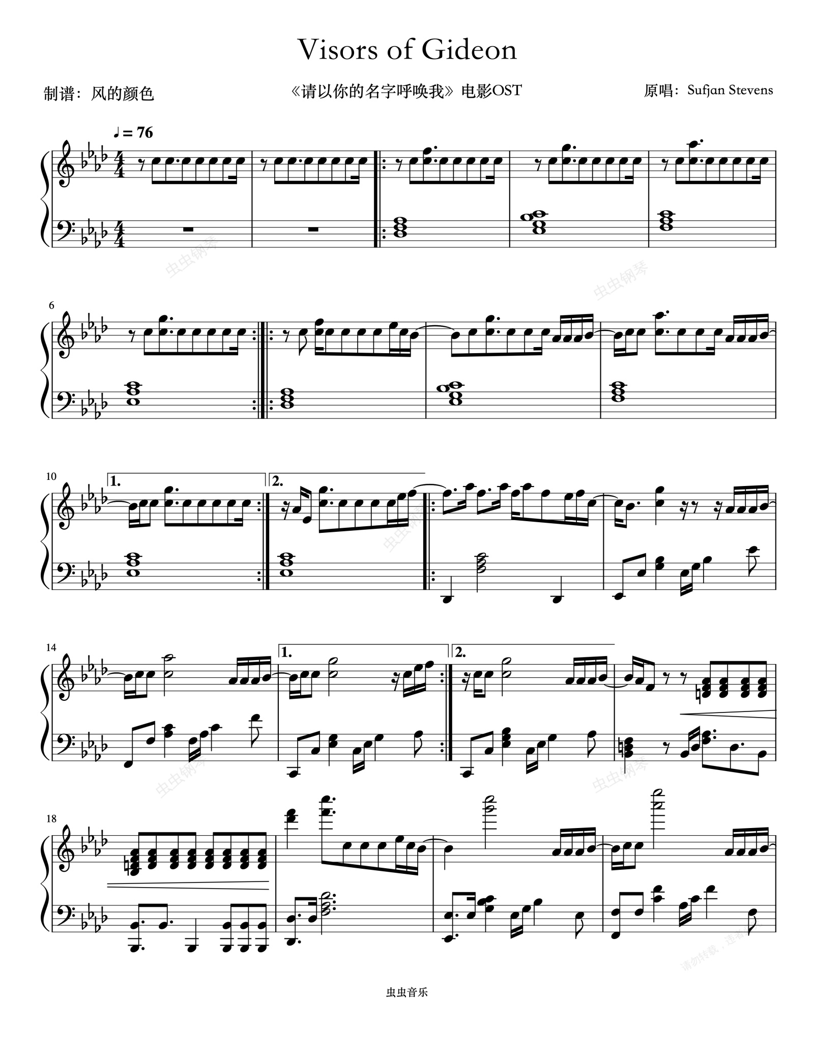 钢琴谱:Visors of Gideon(《请以你的名字呼唤我》 插曲)
