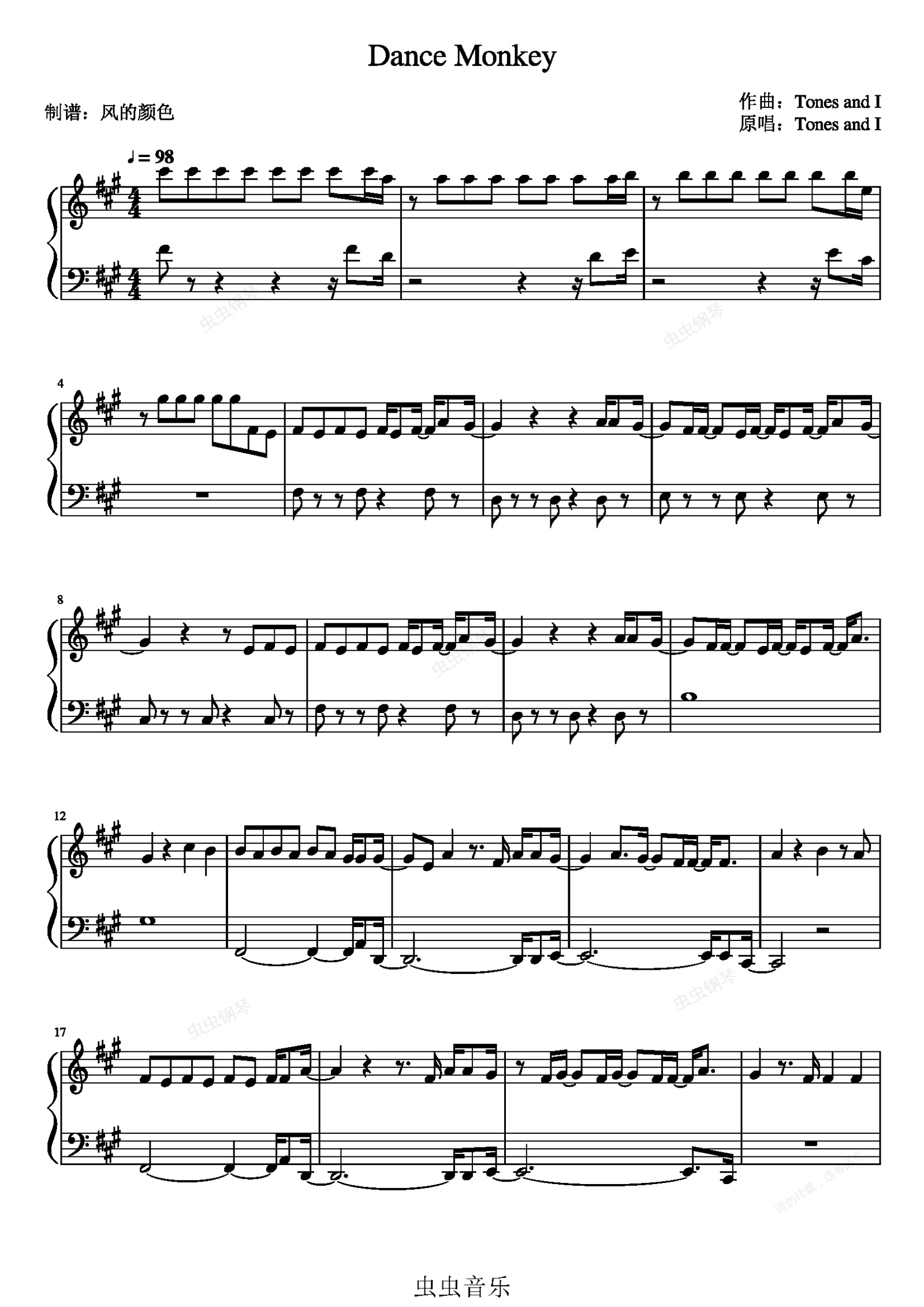 钢琴谱:《Dance Monkey》简单版
