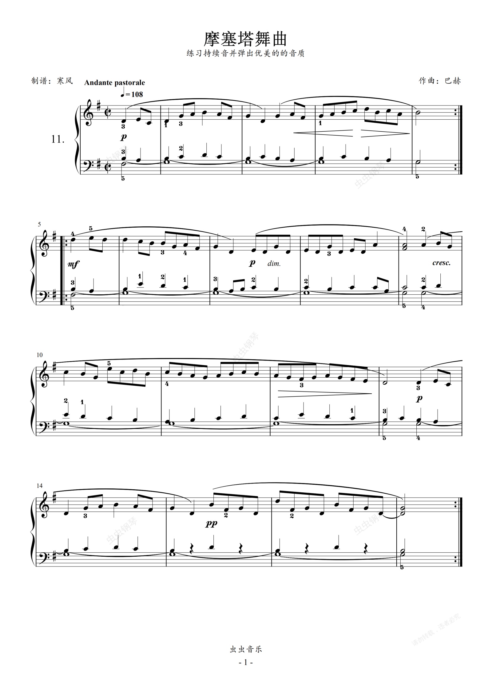 钢琴谱:巴赫初级11-摩塞塔舞曲