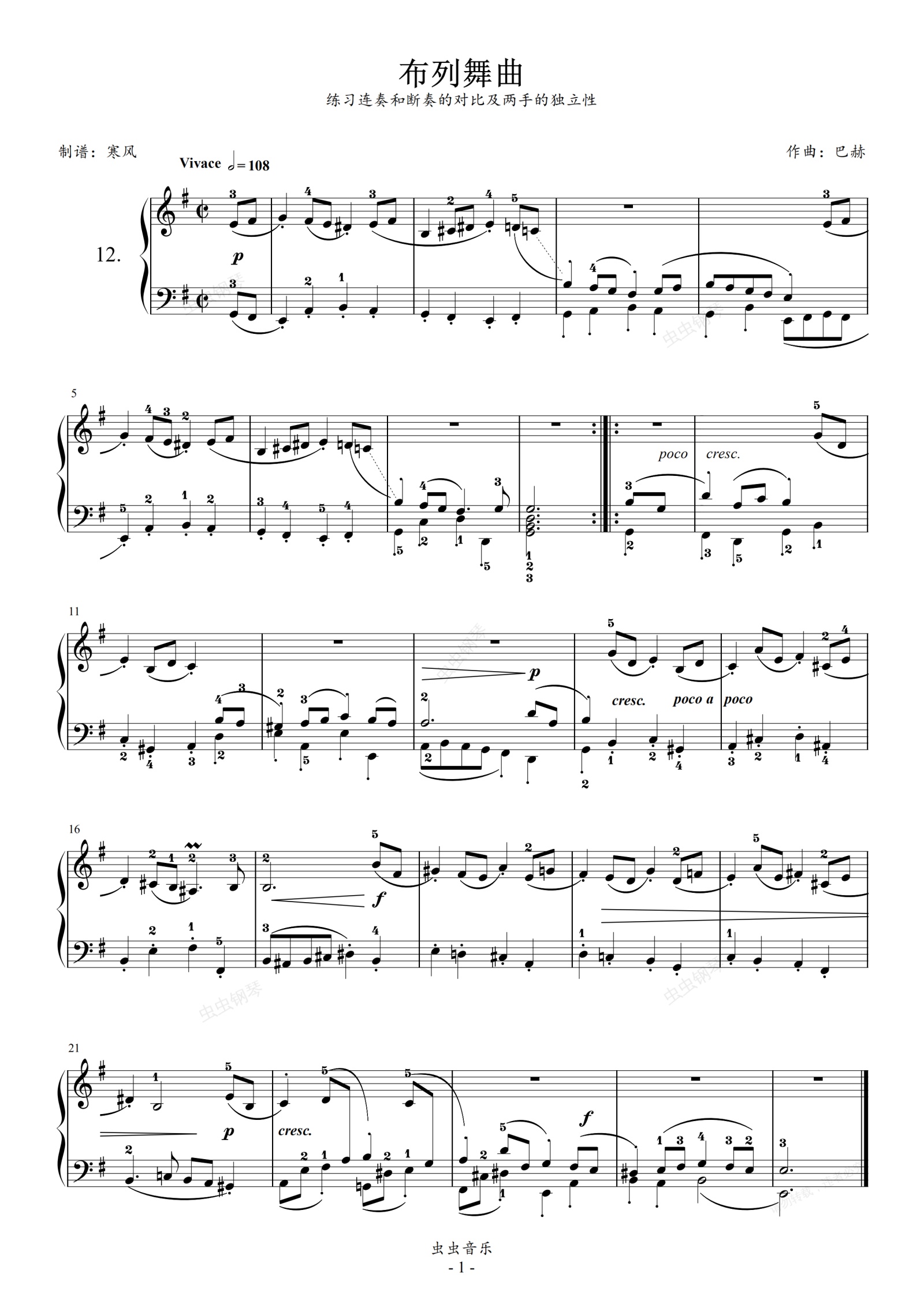 钢琴谱:巴赫初级-12布列舞曲