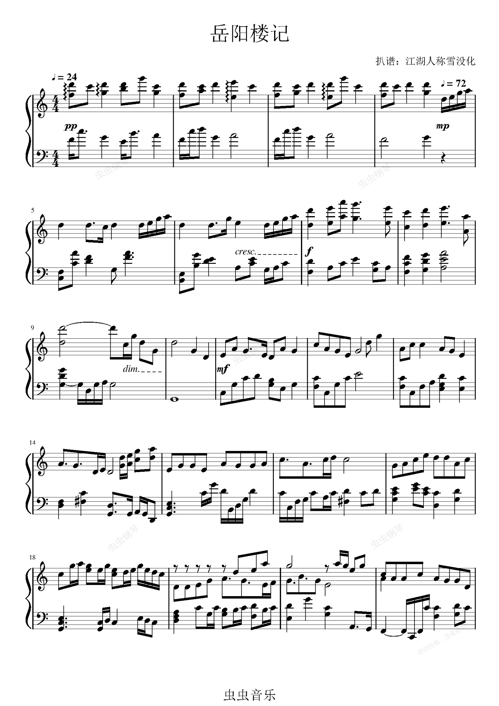 钢琴谱:岳阳楼记-央视boys 钢琴独奏