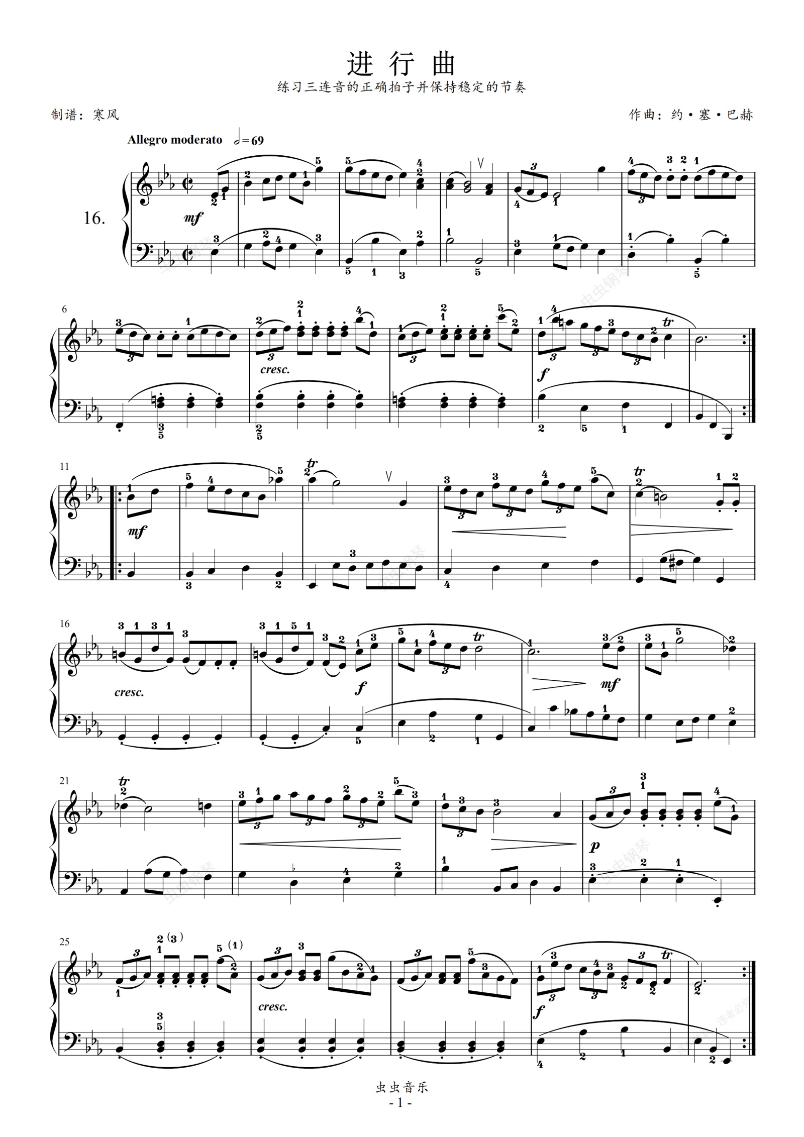 钢琴谱:巴赫初级16-进行曲
