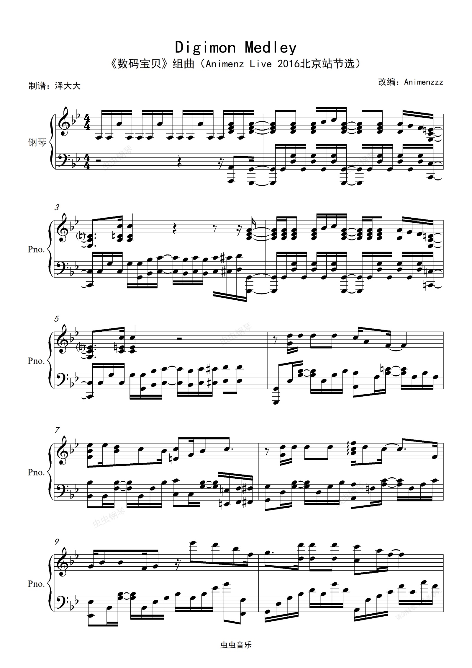 钢琴谱:数码宝贝组曲Animenz Live 2016 北京站(A叔节选)