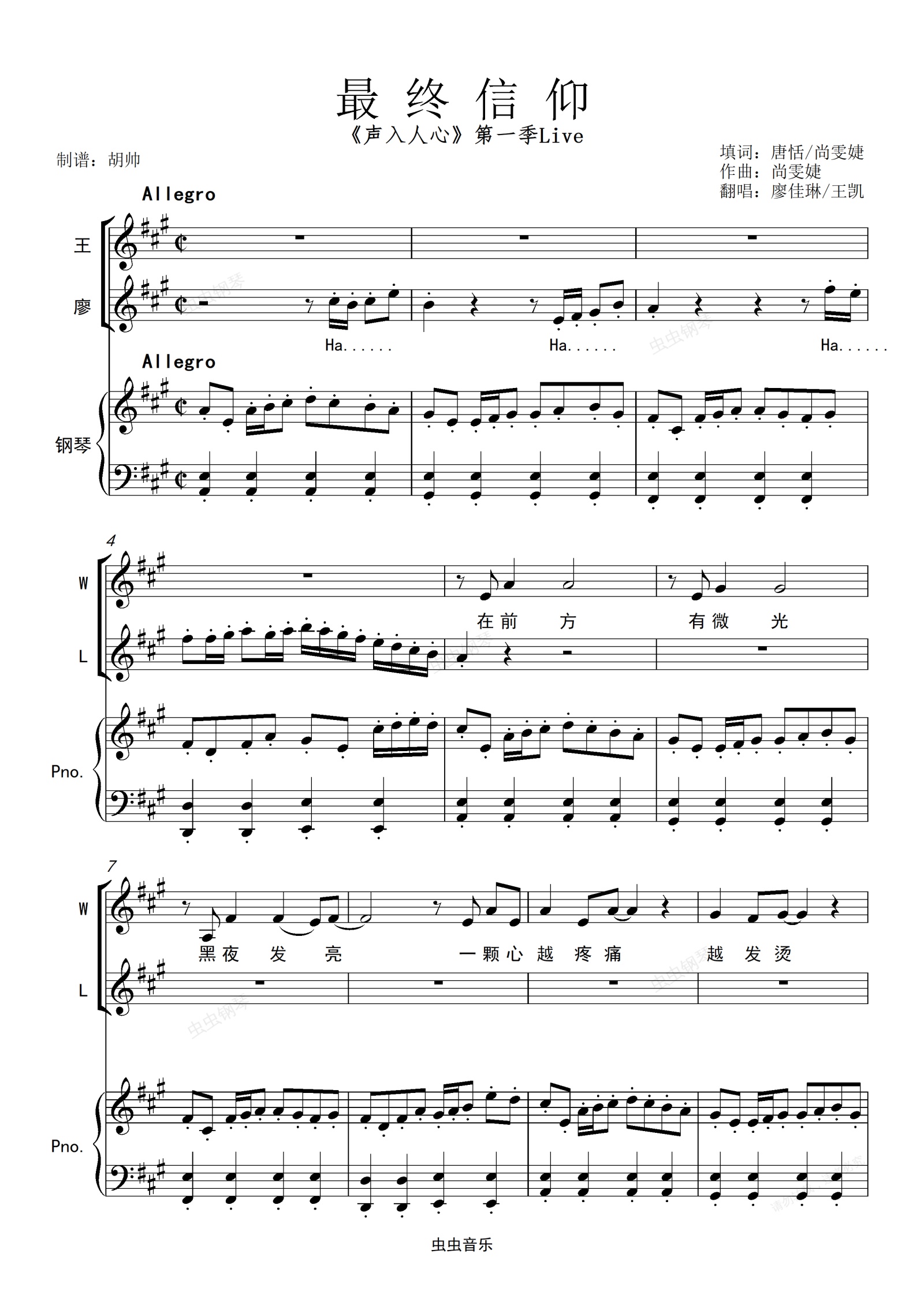 钢琴谱:最终信仰【廖佳琳/王凯live】《声入人心》第一季