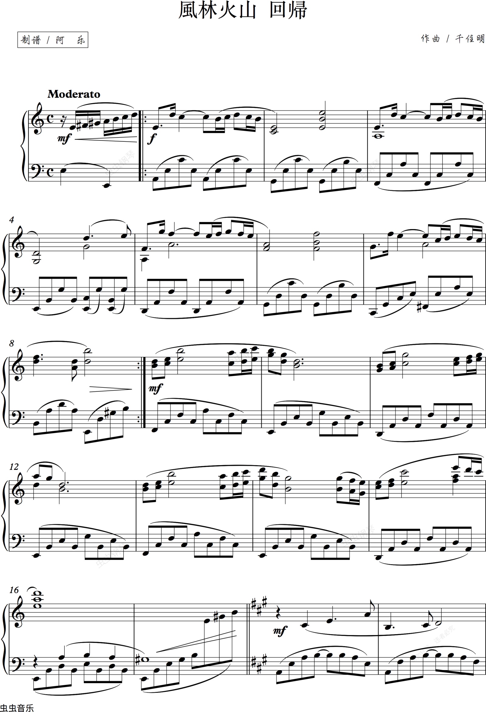 钢琴谱:风林火山~回归~ NHK大河剧主题曲 专辑钢琴版