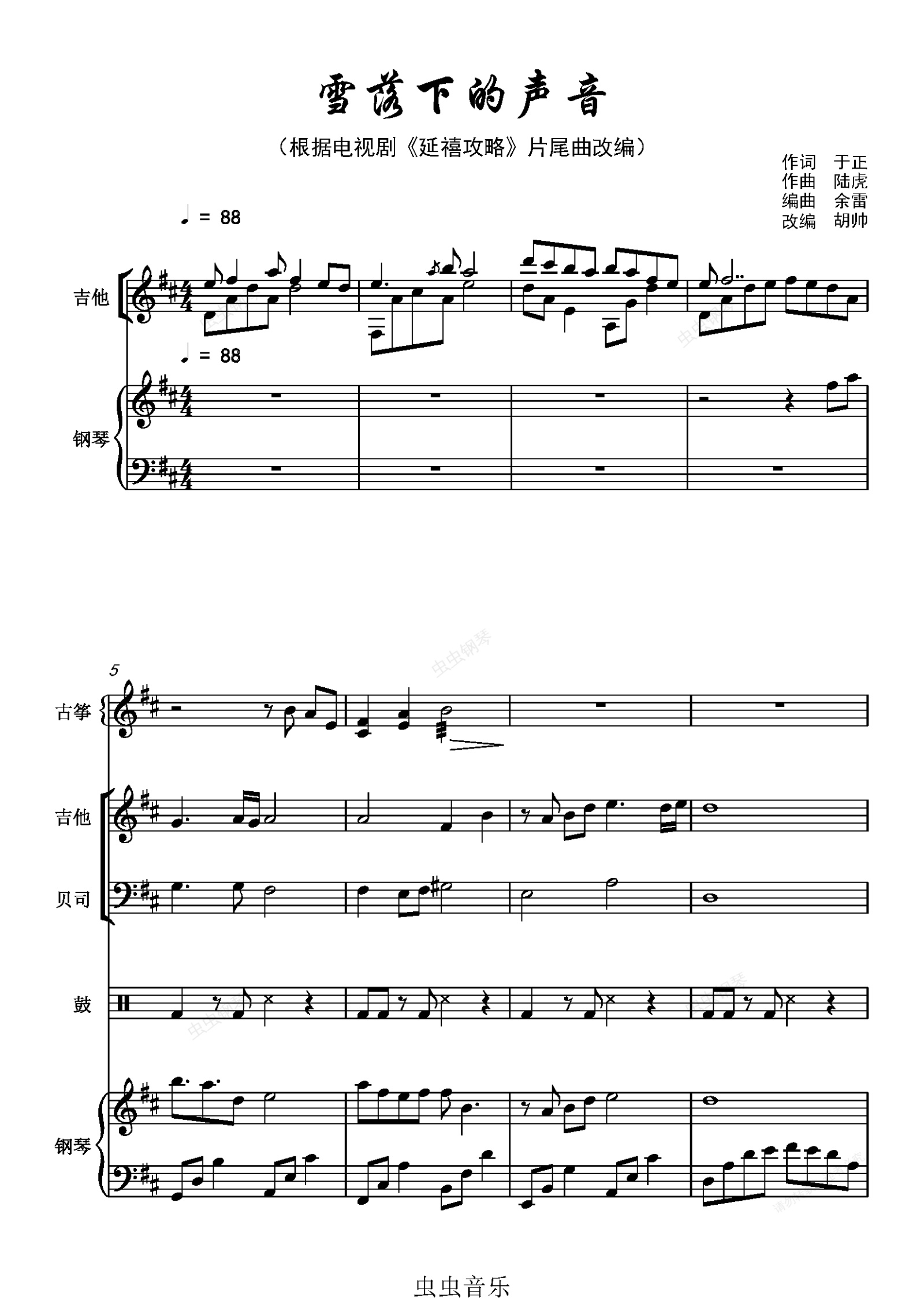 钢琴谱:雪落下的声音【钢琴、吉他、古筝、鼓、贝司】
