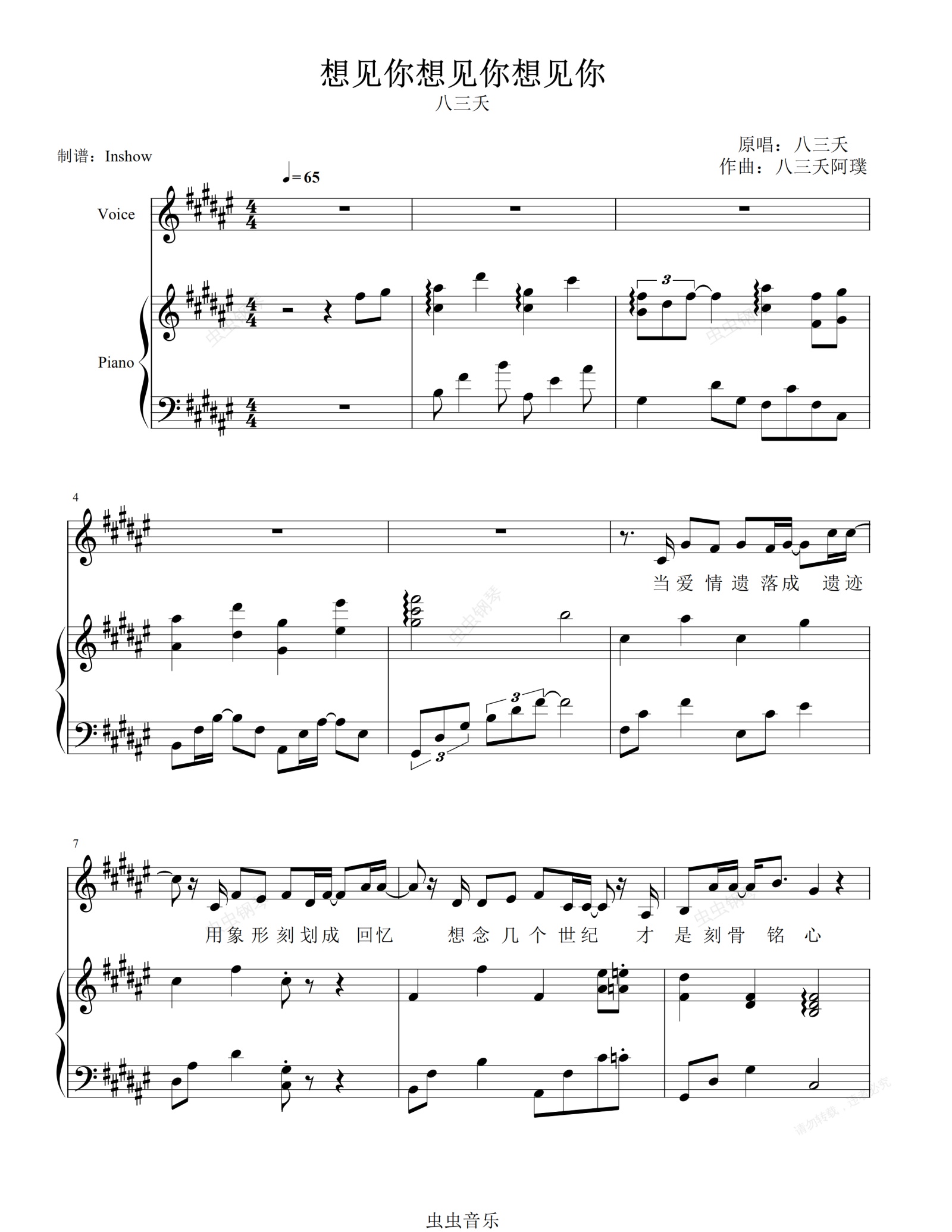 钢琴谱:八三夭 - 想见你想见你想见你【弹唱谱】