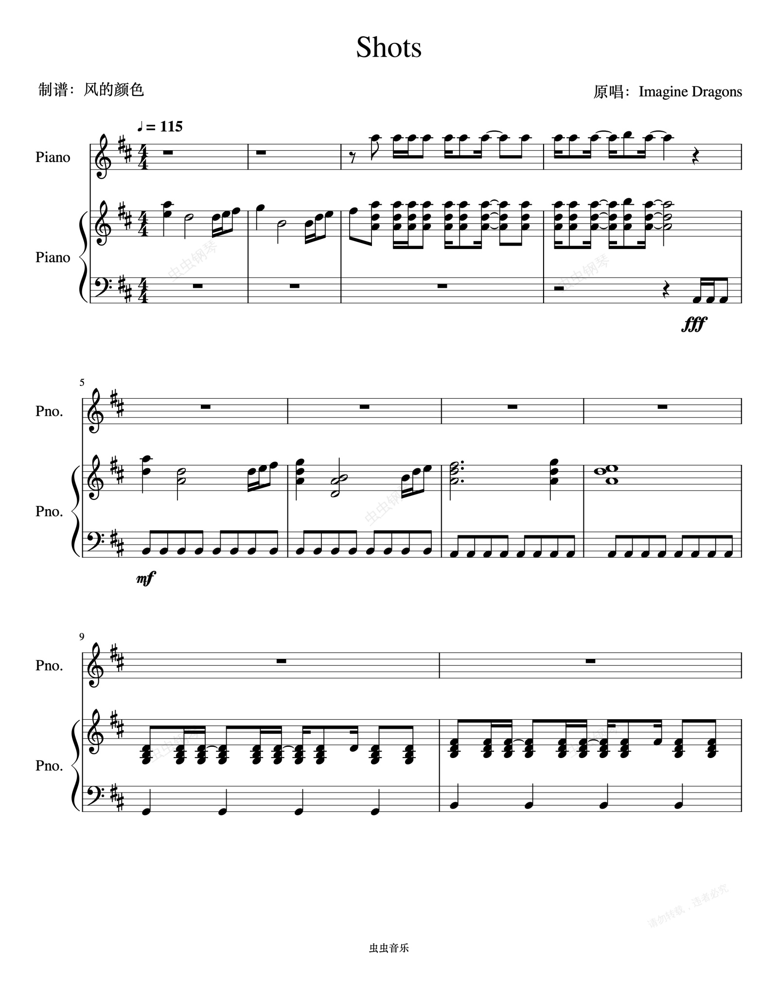 钢琴谱:《Shots》完美还原版