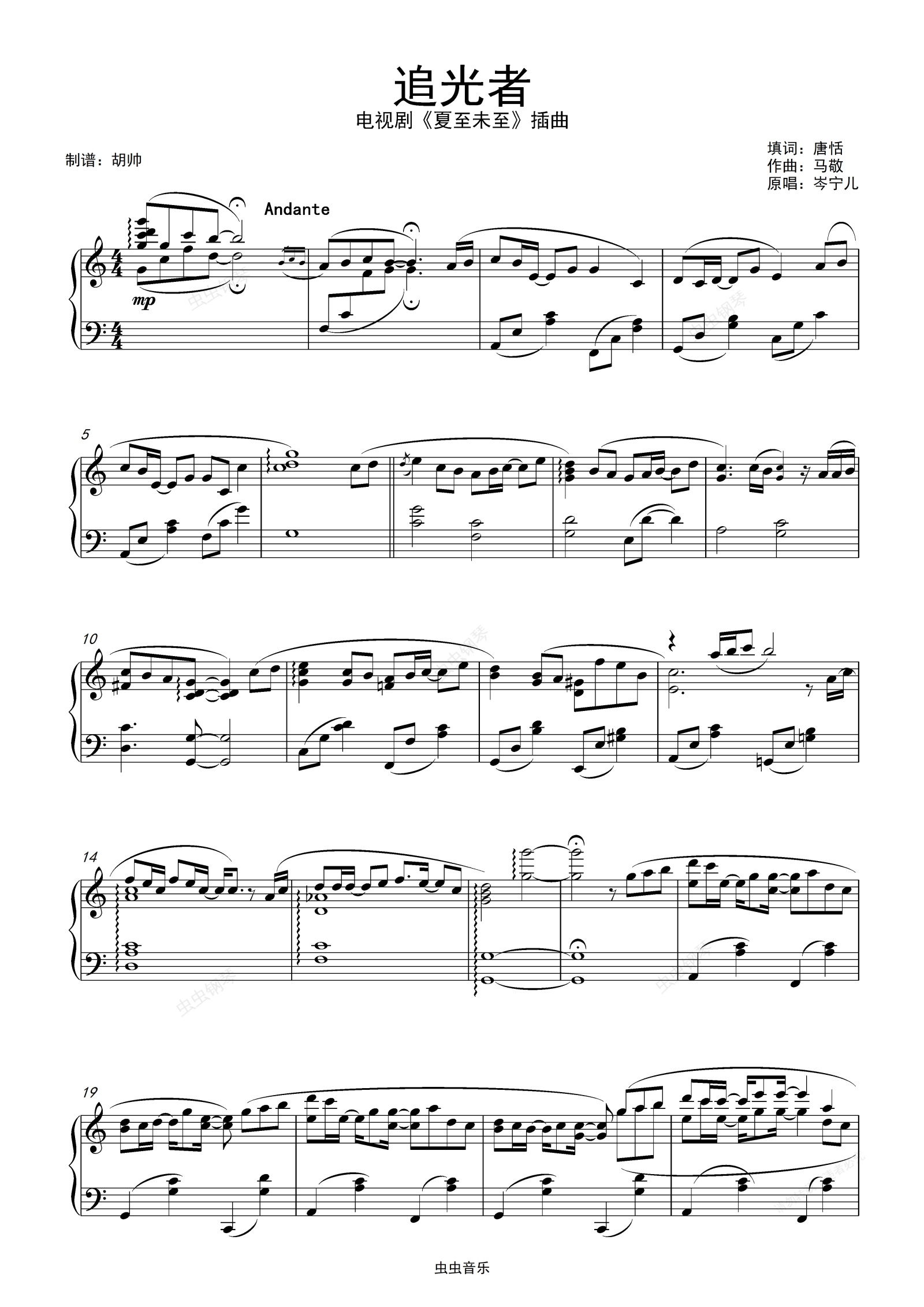 钢琴谱:追光者【C调】电视剧《夏至未至》插曲