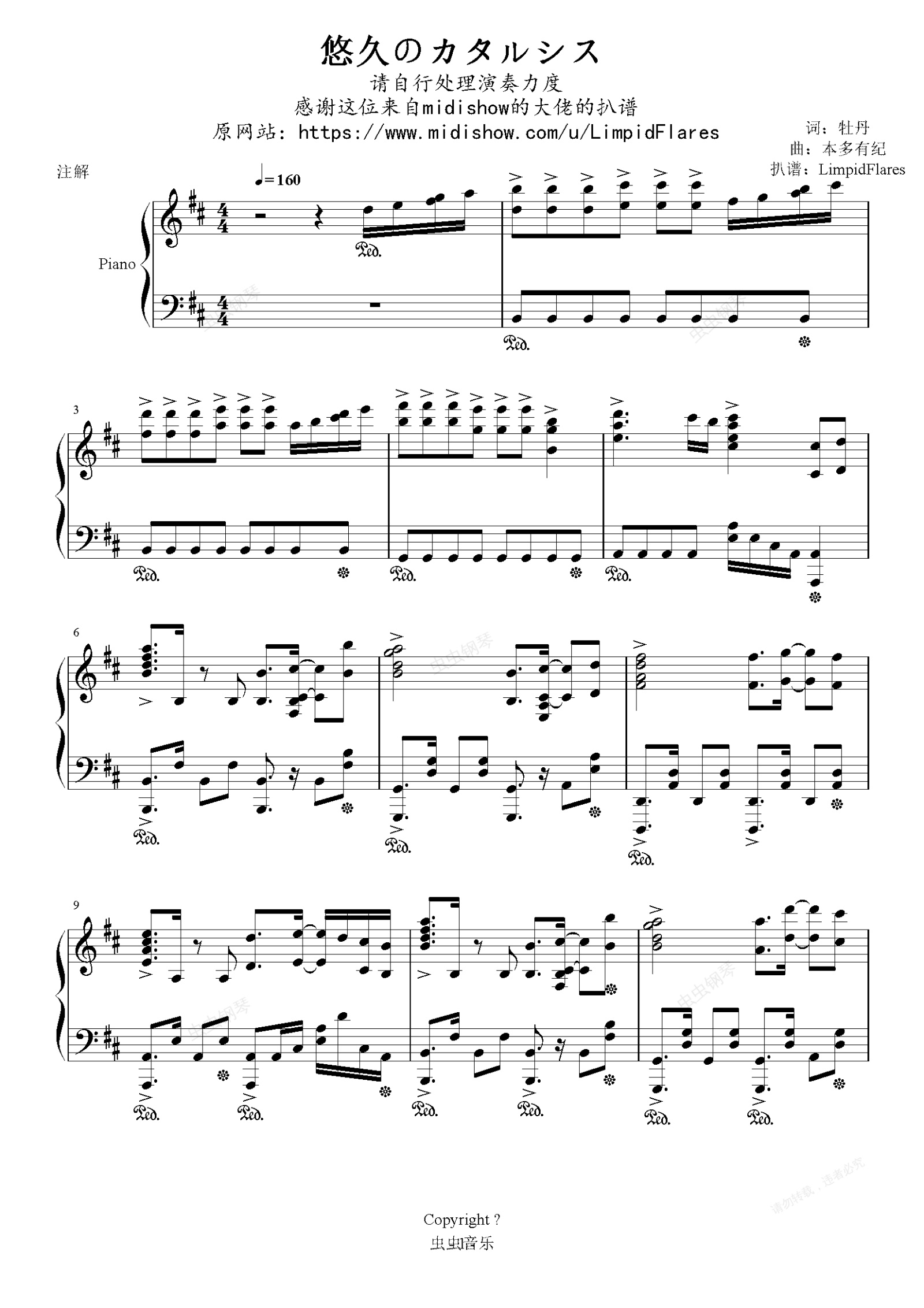 钢琴谱:悠久のカタルシス(碧蓝航线主题曲)