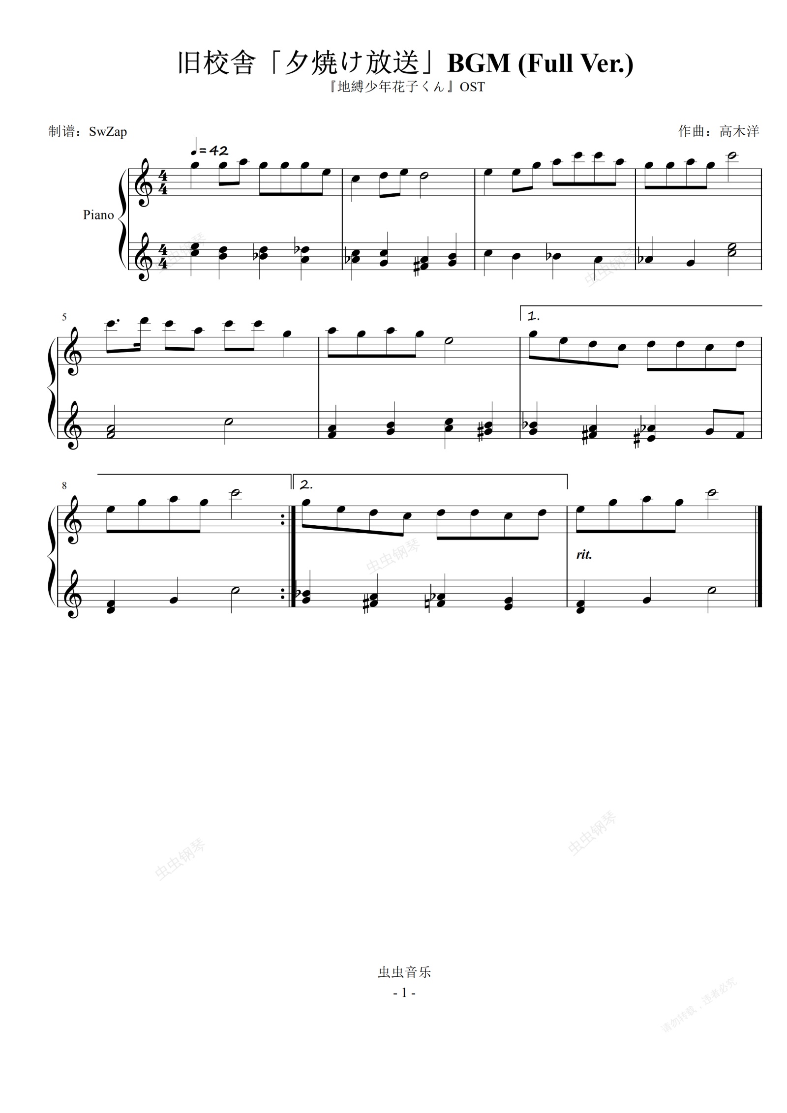 钢琴谱:《地缚少年花子君》旧校舍广播BGM