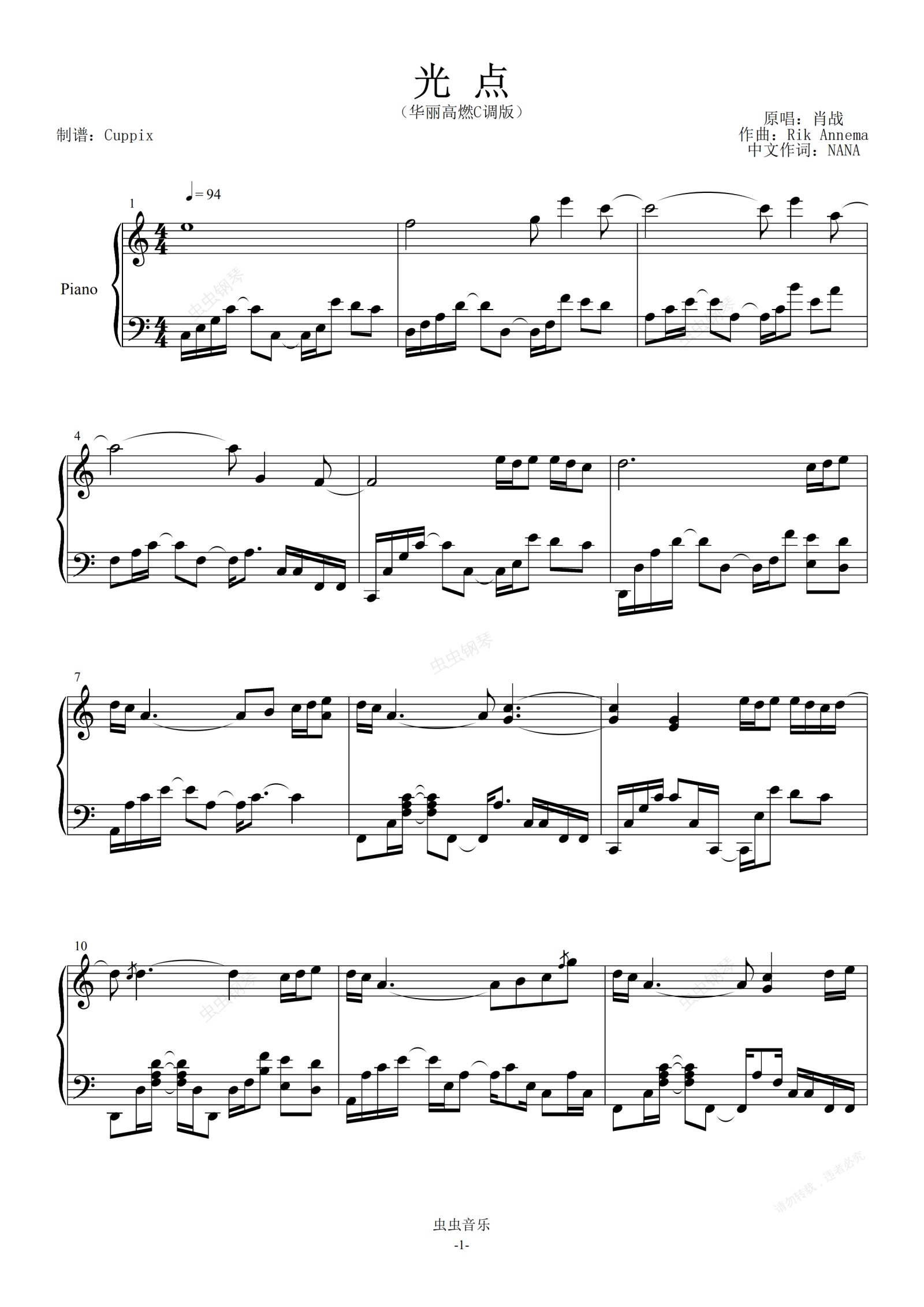 钢琴谱:肖战《光点》华丽高燃 C调版(Cuppix编配)