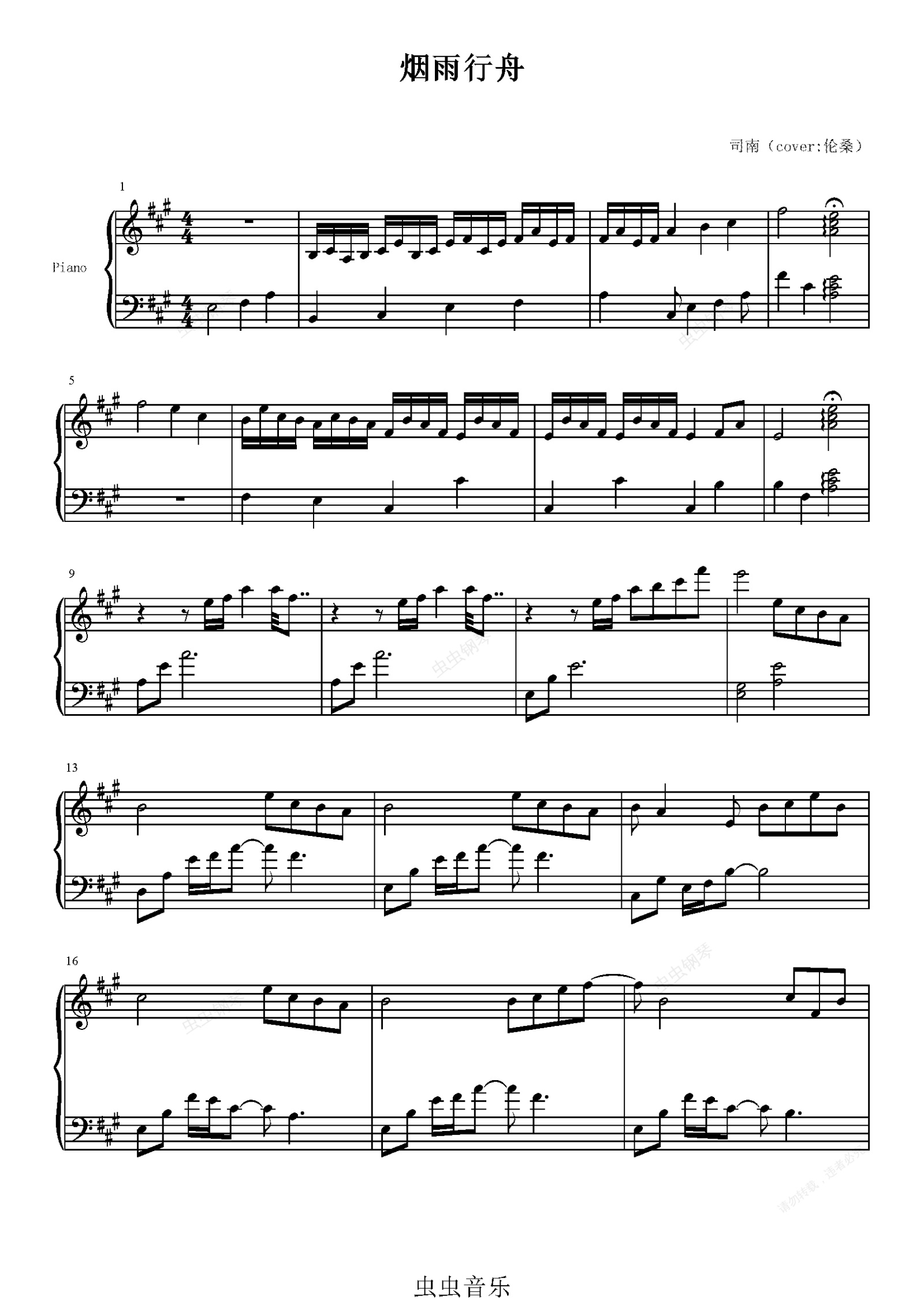 钢琴谱:烟雨行舟