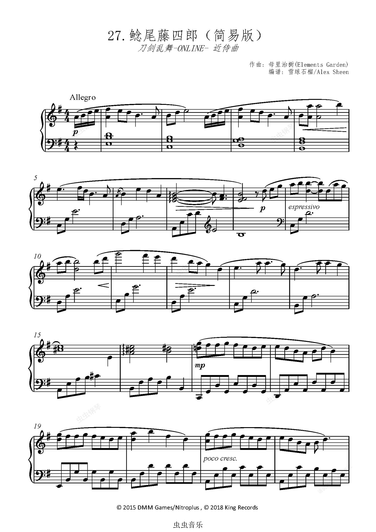 钢琴谱:鲶尾藤四郎 近侍曲 【刀剑乱舞】(简易版)