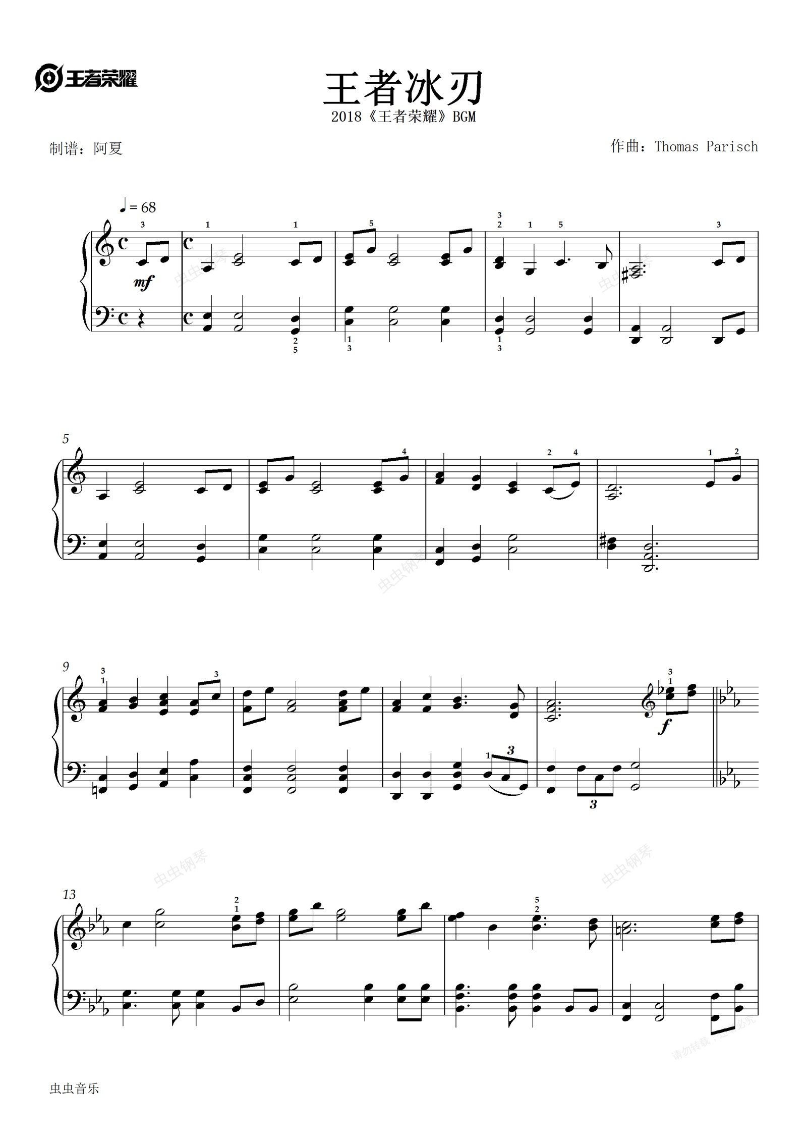 钢琴谱:王者冰刃 王者荣耀原声 - 白银(简易)版 带指法