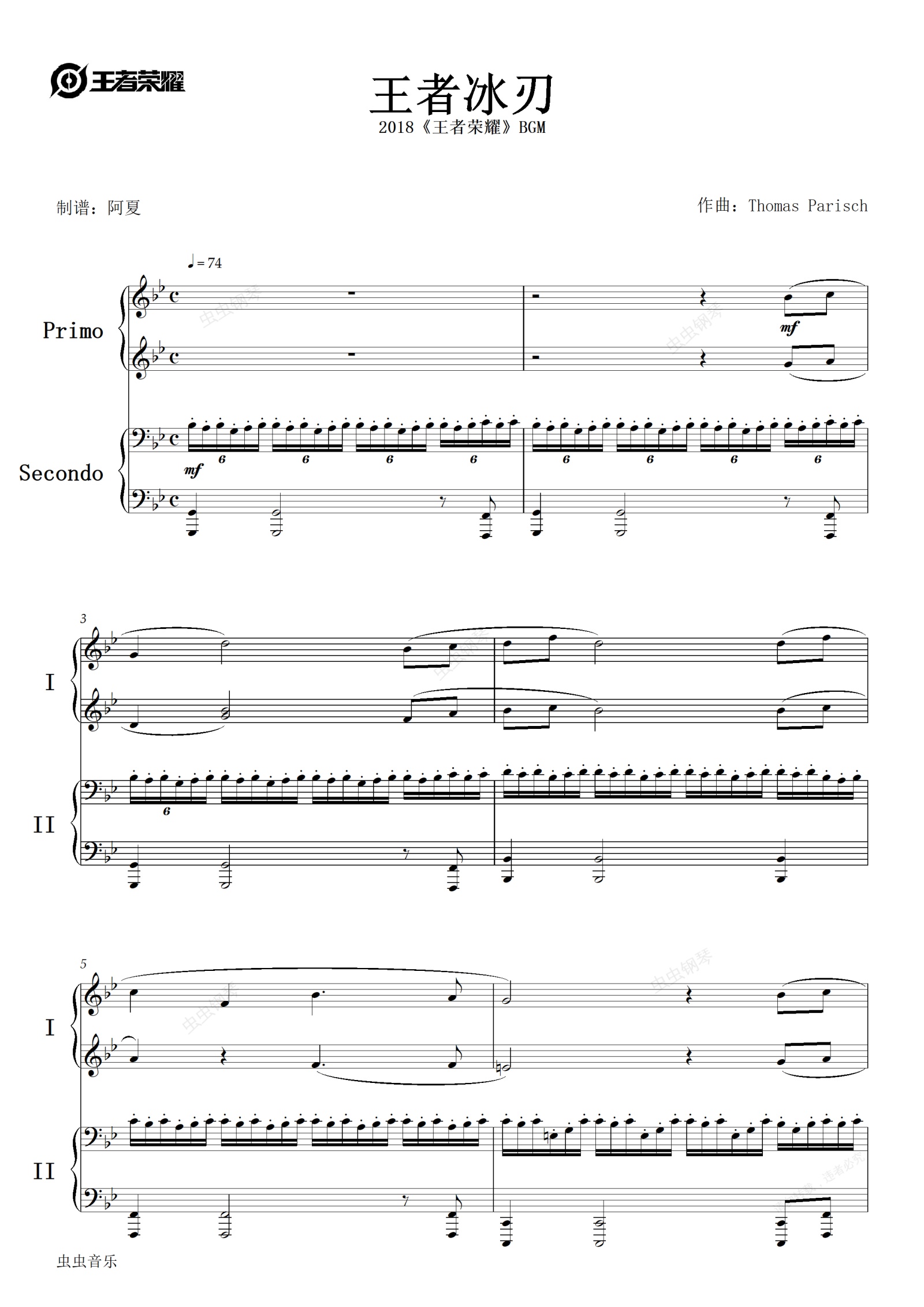 钢琴谱:王者冰刃 超燃四手联弹 - 王者荣耀原声 - 王者版