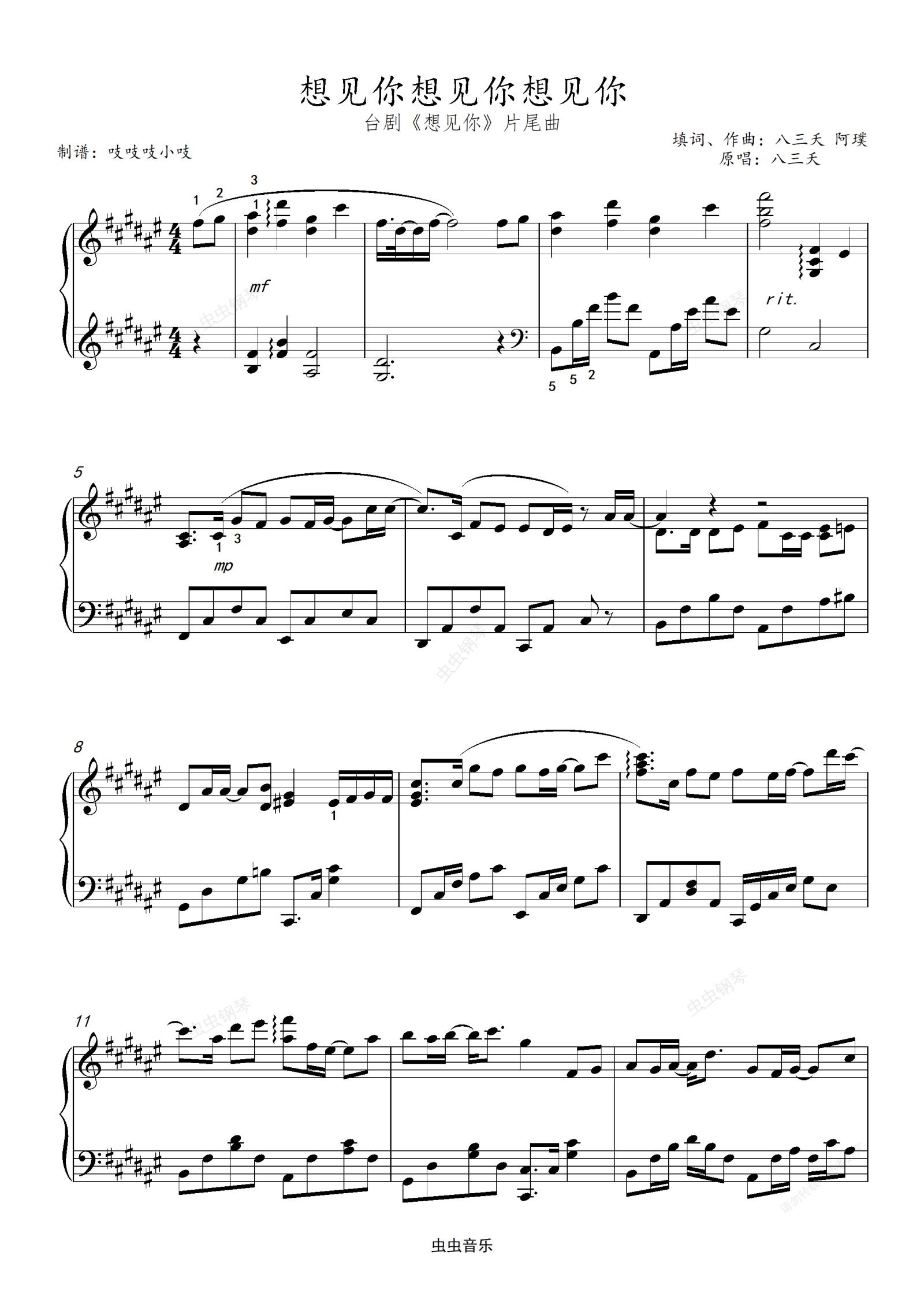 钢琴谱:想见你想见你想见你(《想见你》片尾曲)