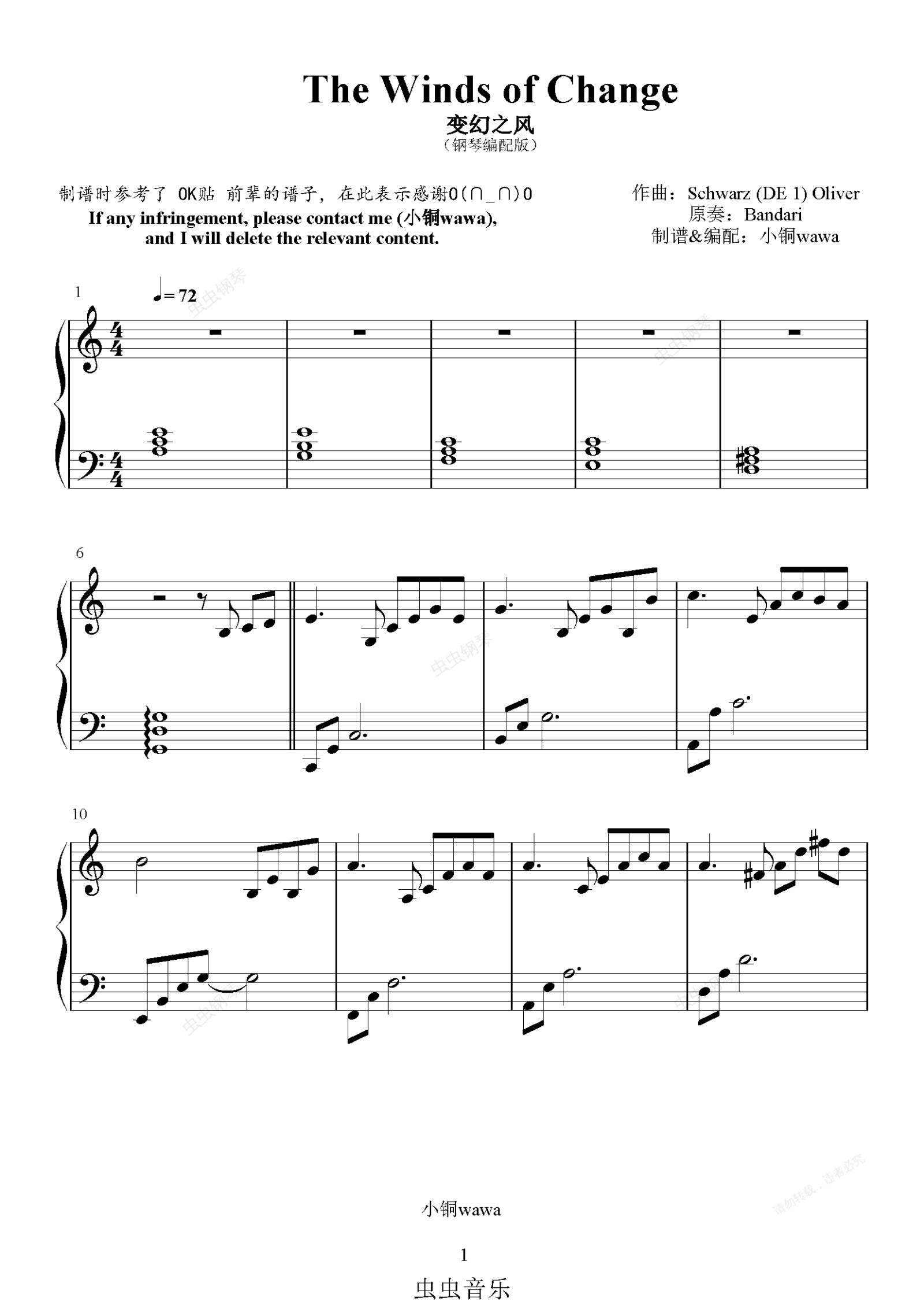 钢琴谱:The Winds of Change(变幻之风)钢琴编配版