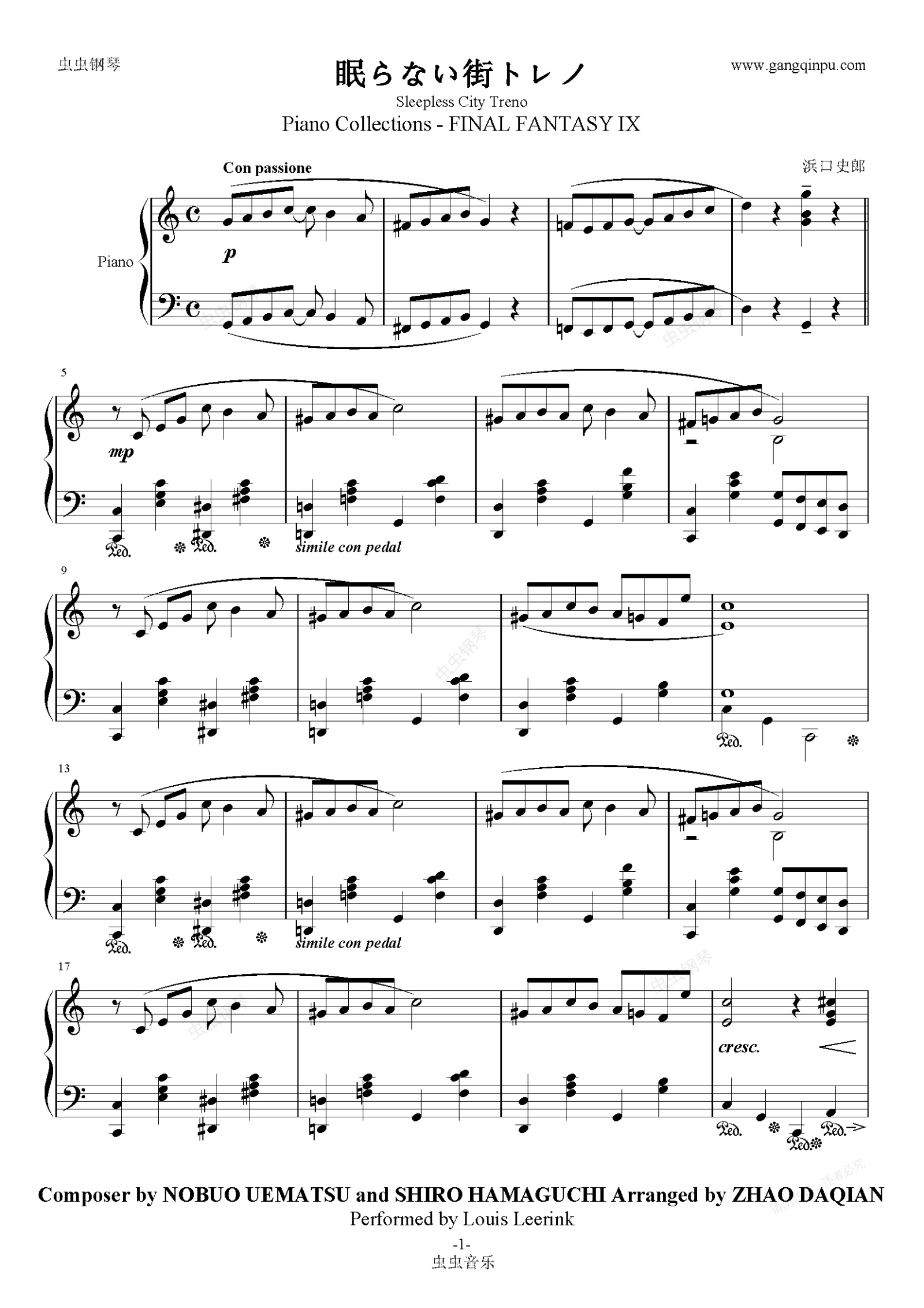 钢琴谱:【FFIX】不夜城 特雷诺