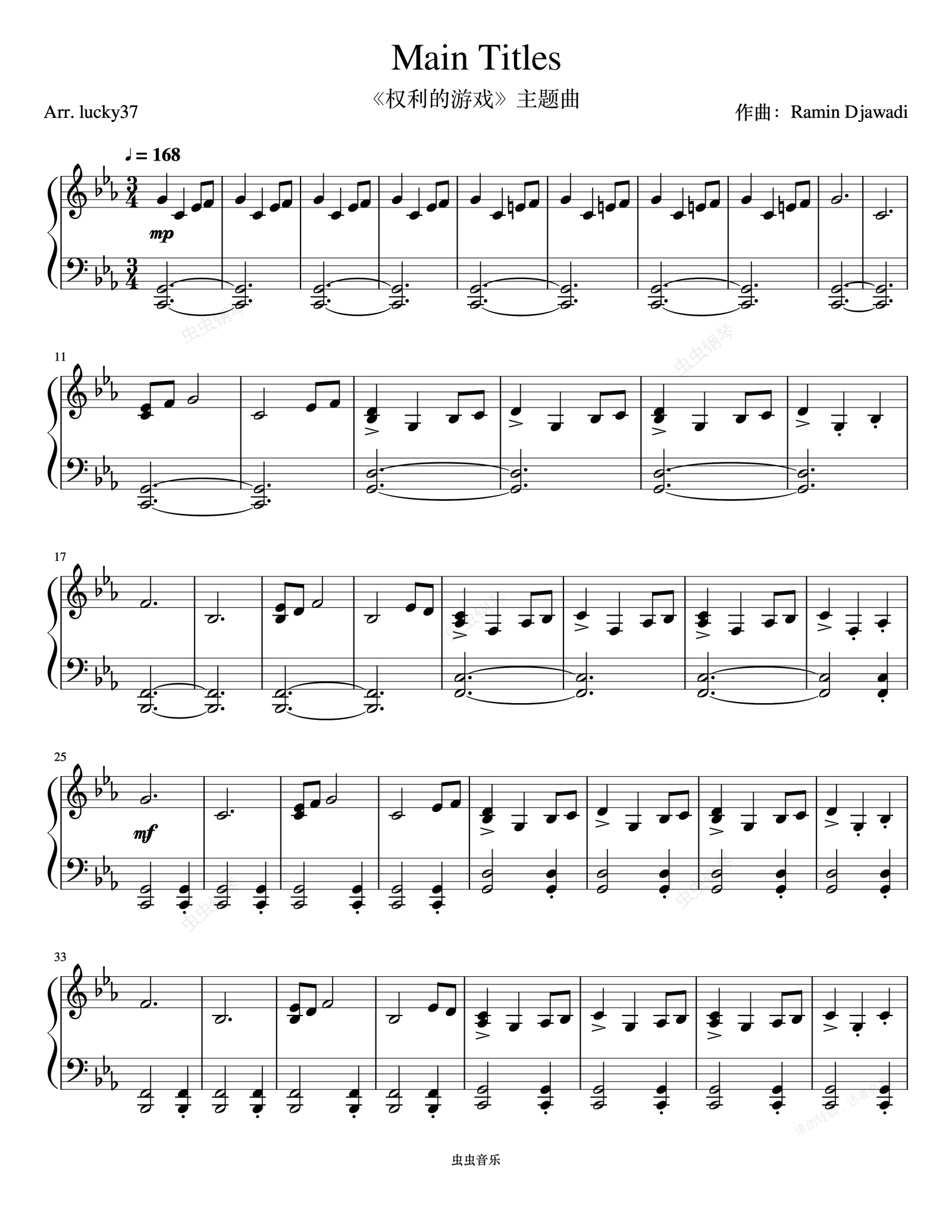 钢琴谱:【超震撼!】《权利的游戏》主题曲简化版