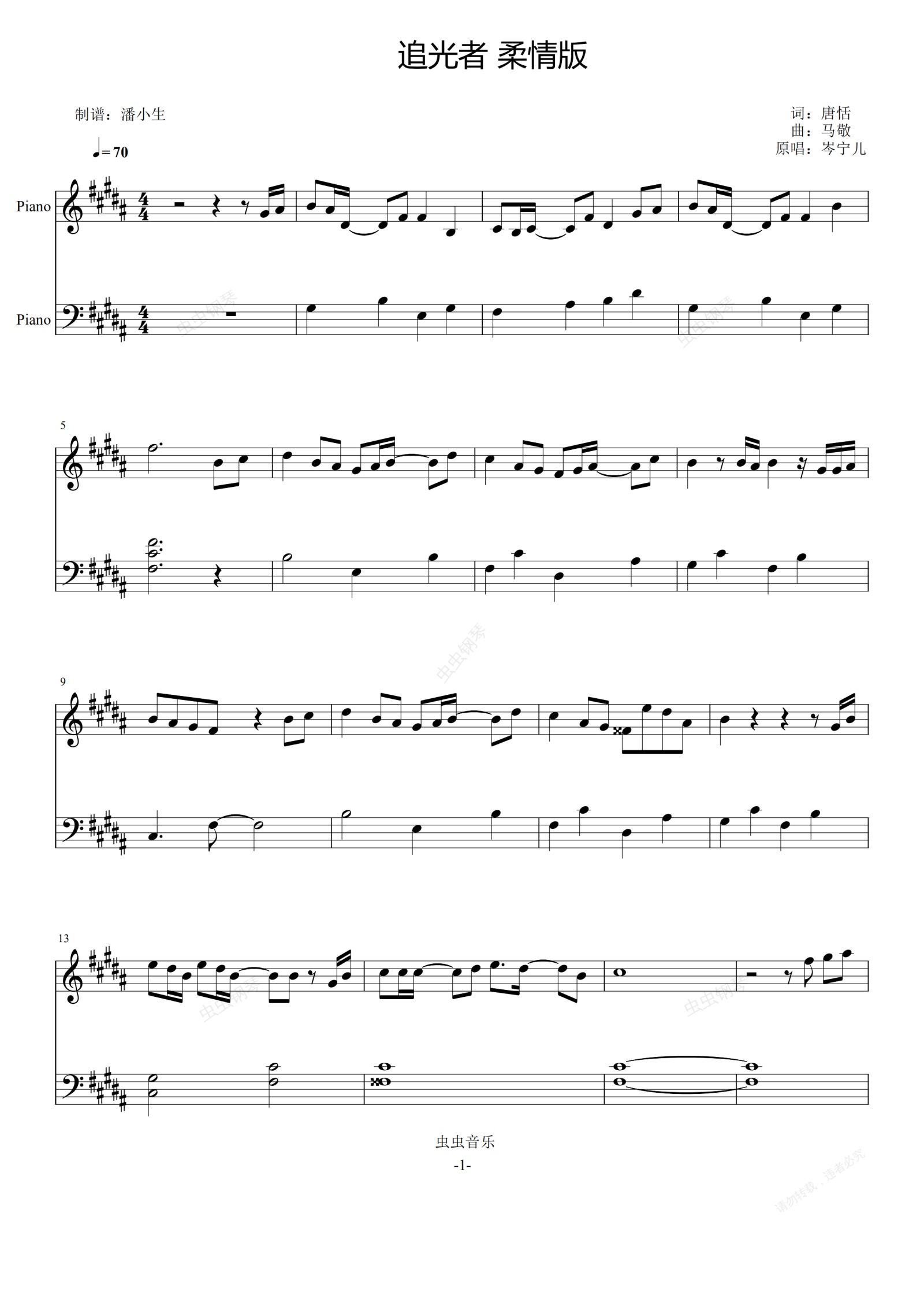 钢琴谱:追光者 原调 柔情版 独奏版 夏至未至插曲