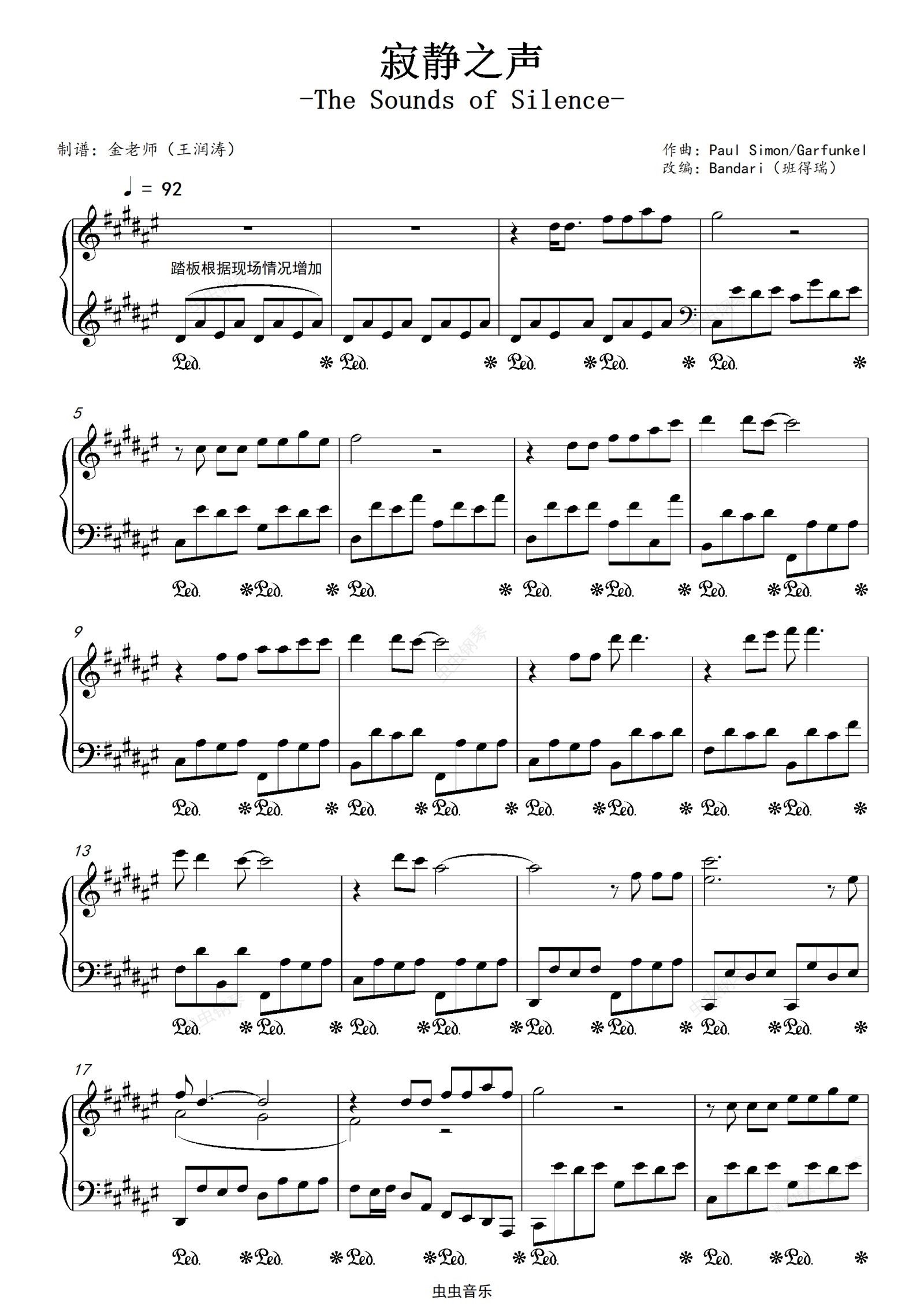 钢琴谱:The Sound of Silence(寂静之声)-金老师原声独奏谱
