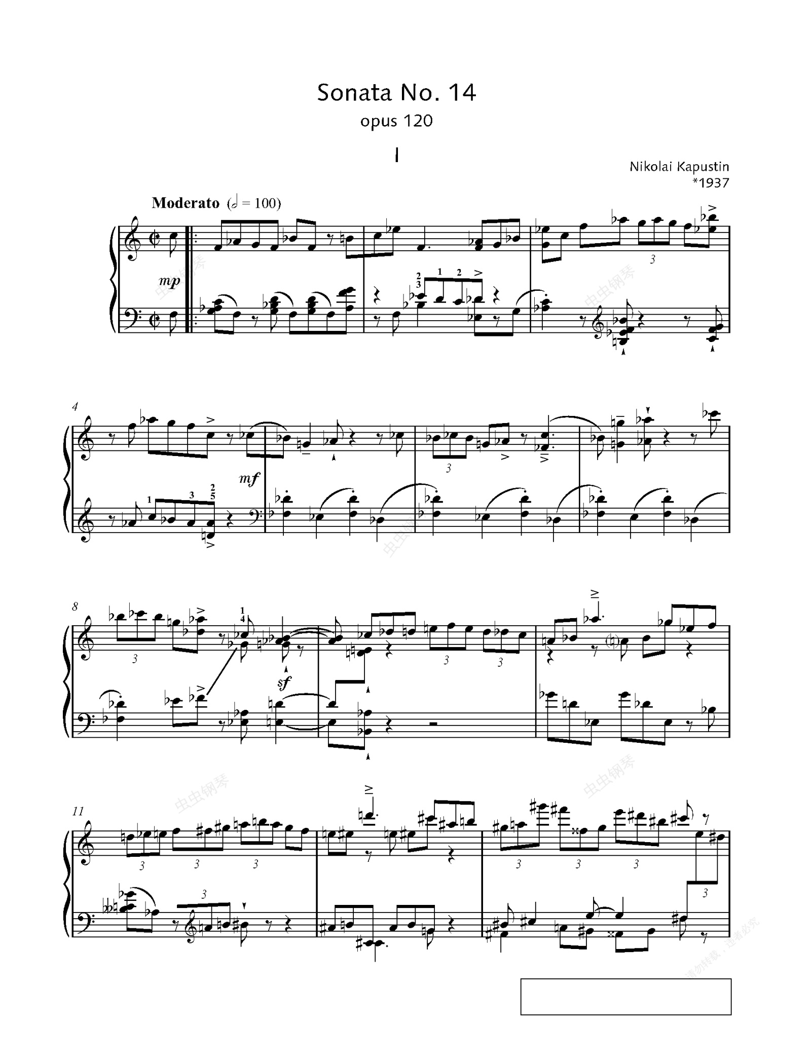 钢琴谱:爵士奏鸣曲 No. 14 Op.120 第一乐章