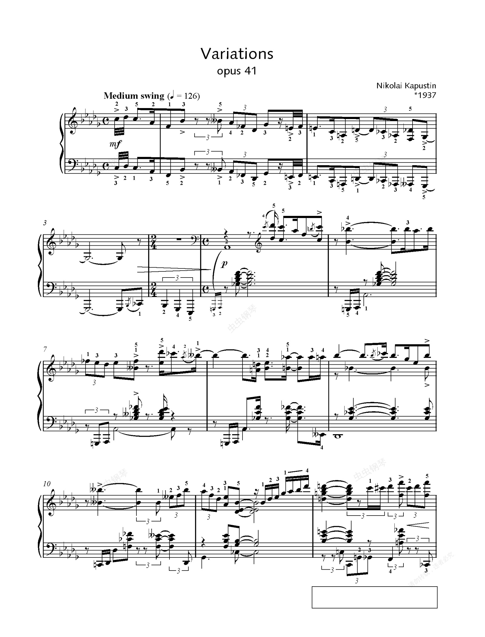 钢琴谱:爵士变奏曲 Op.41 Variations