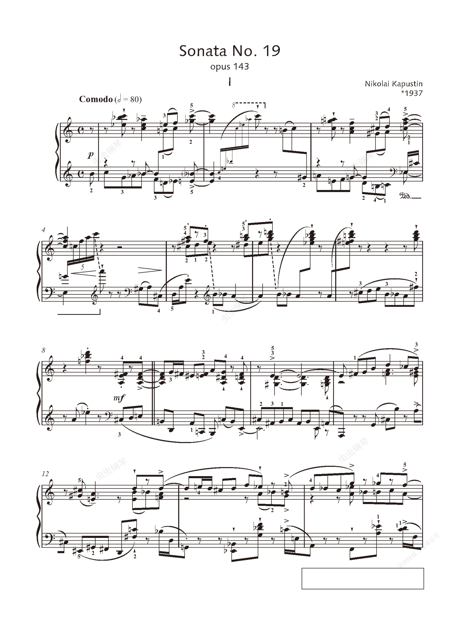钢琴谱:爵士奏鸣曲 No.19 Op.143 第一乐章