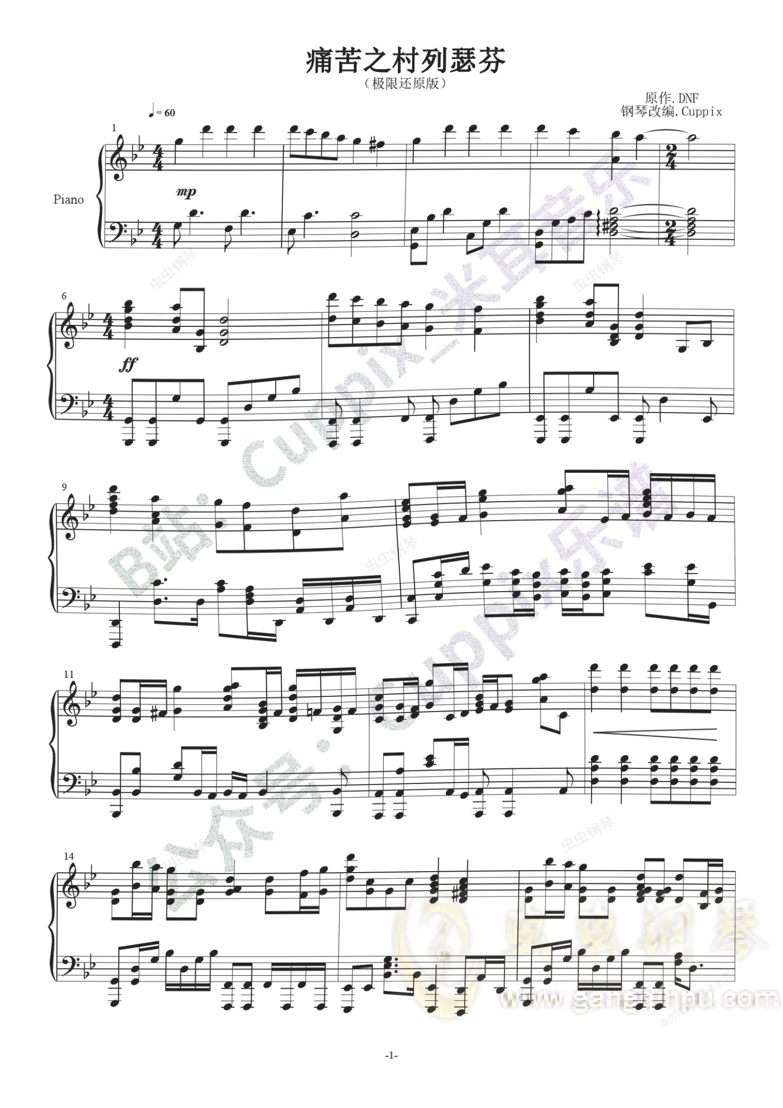 钢琴谱:DNF 痛苦之村列瑟芬(极限还原版)