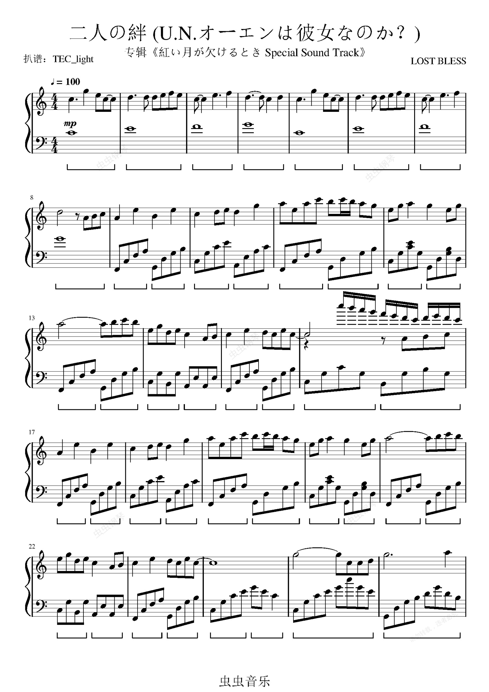 钢琴谱:【钢琴】二人の絆 (U.N.オーエンは彼女なのか?)