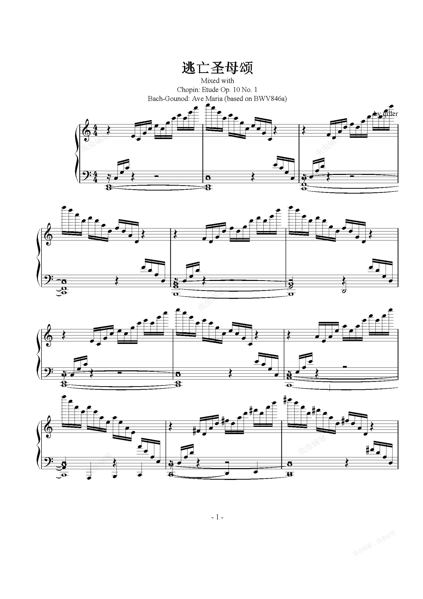 钢琴谱:【肖邦X巴赫】逃亡圣母颂