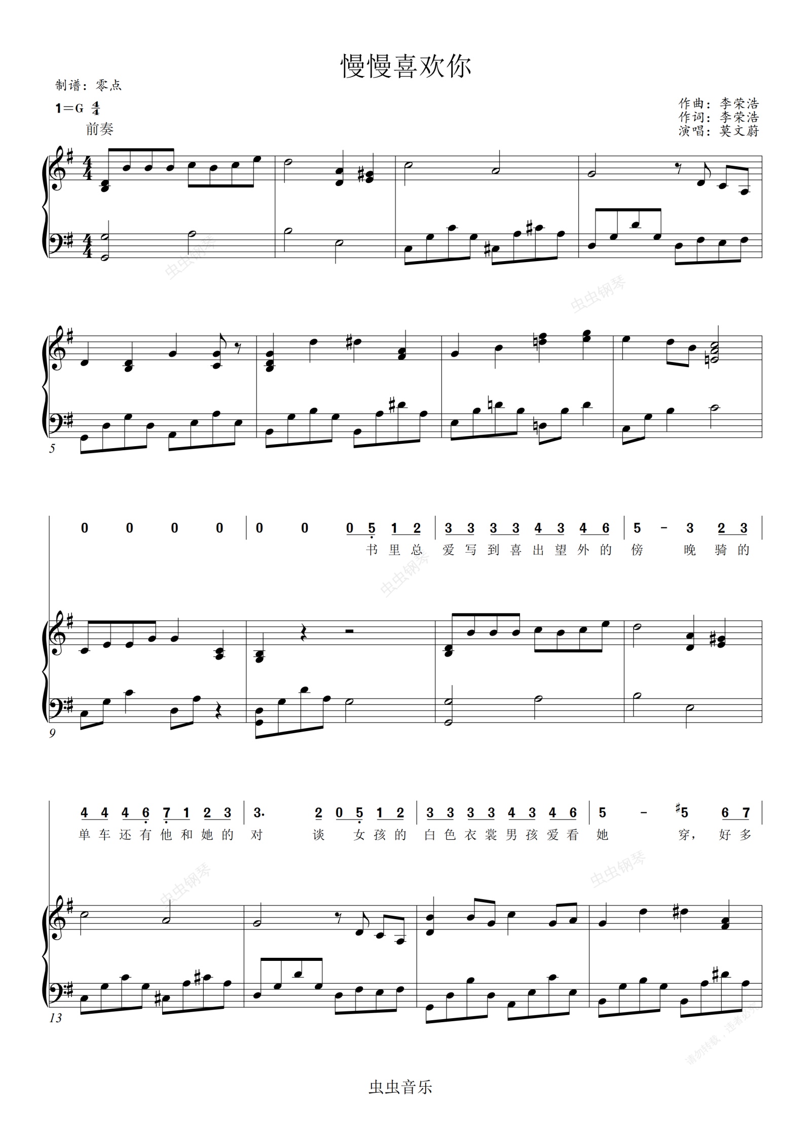 钢琴谱:慢慢喜欢你-原调弹唱(简谱+五线谱混排)